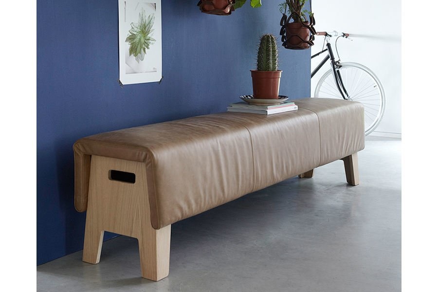 De bank en rugleuning zijn in verschillende lengtes leverbaar. De Spoinq Cake is verkrijgbaar in stof en leer.