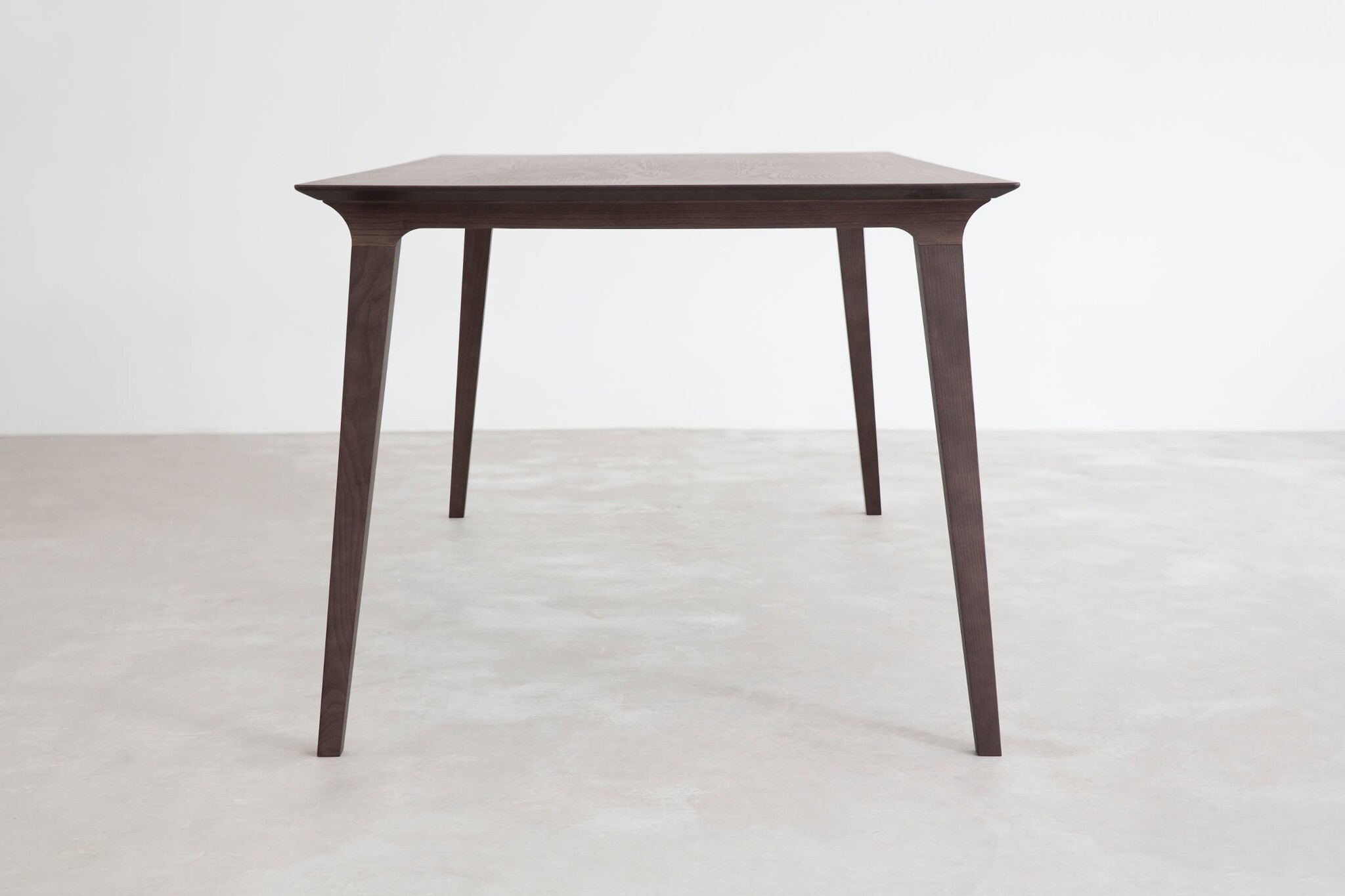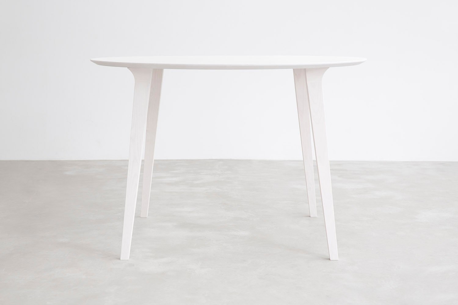 De tafel heeft een 4-poot onderstel. De poten van de tafel zijn ietwat gebogen, waardoor de tafel lichter in gewicht is.