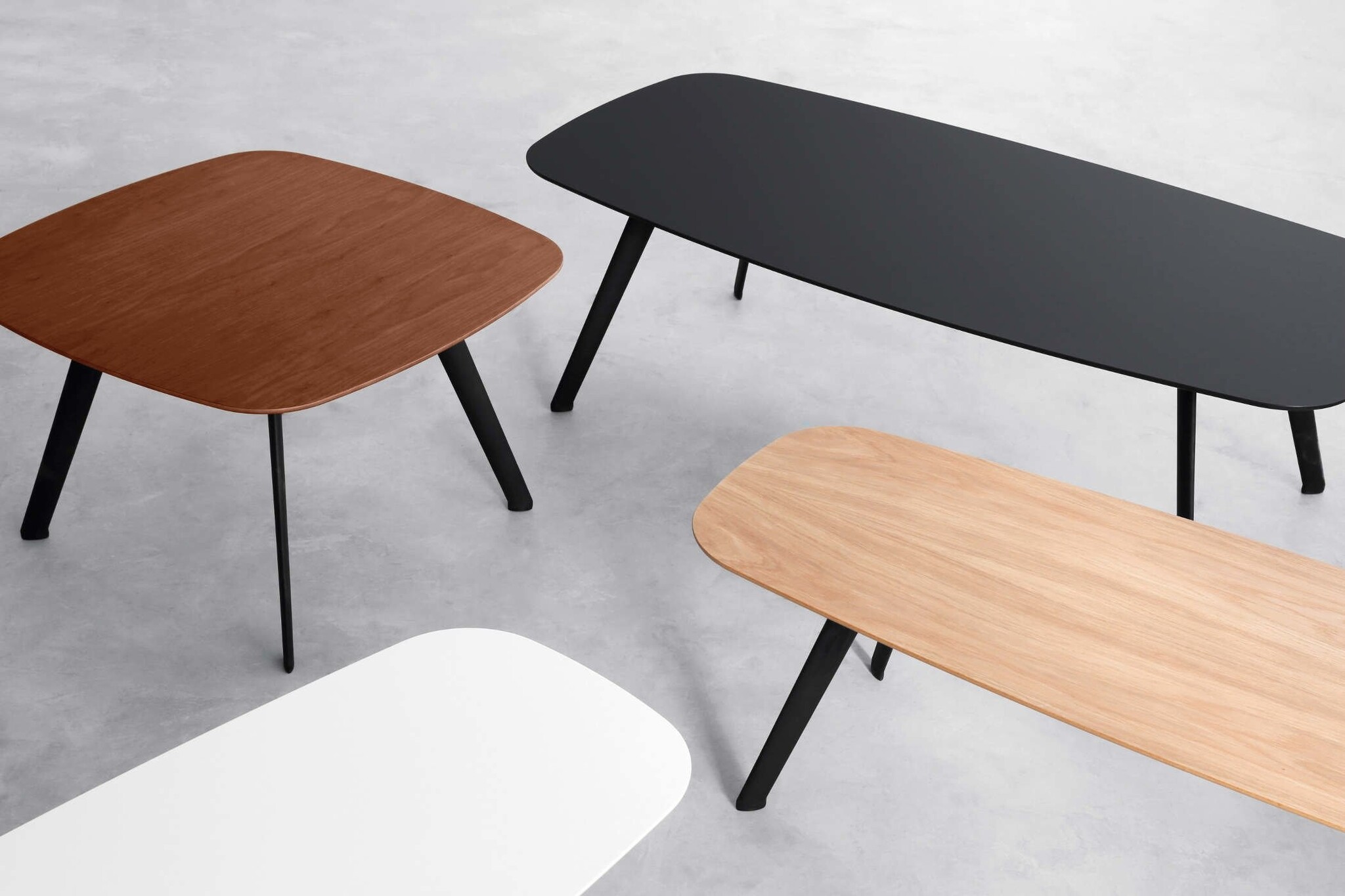 Voor het Solapa tafelblad zijn 4 afwerkingen beschikbaar: white, oak, walnut of black Fenix.
