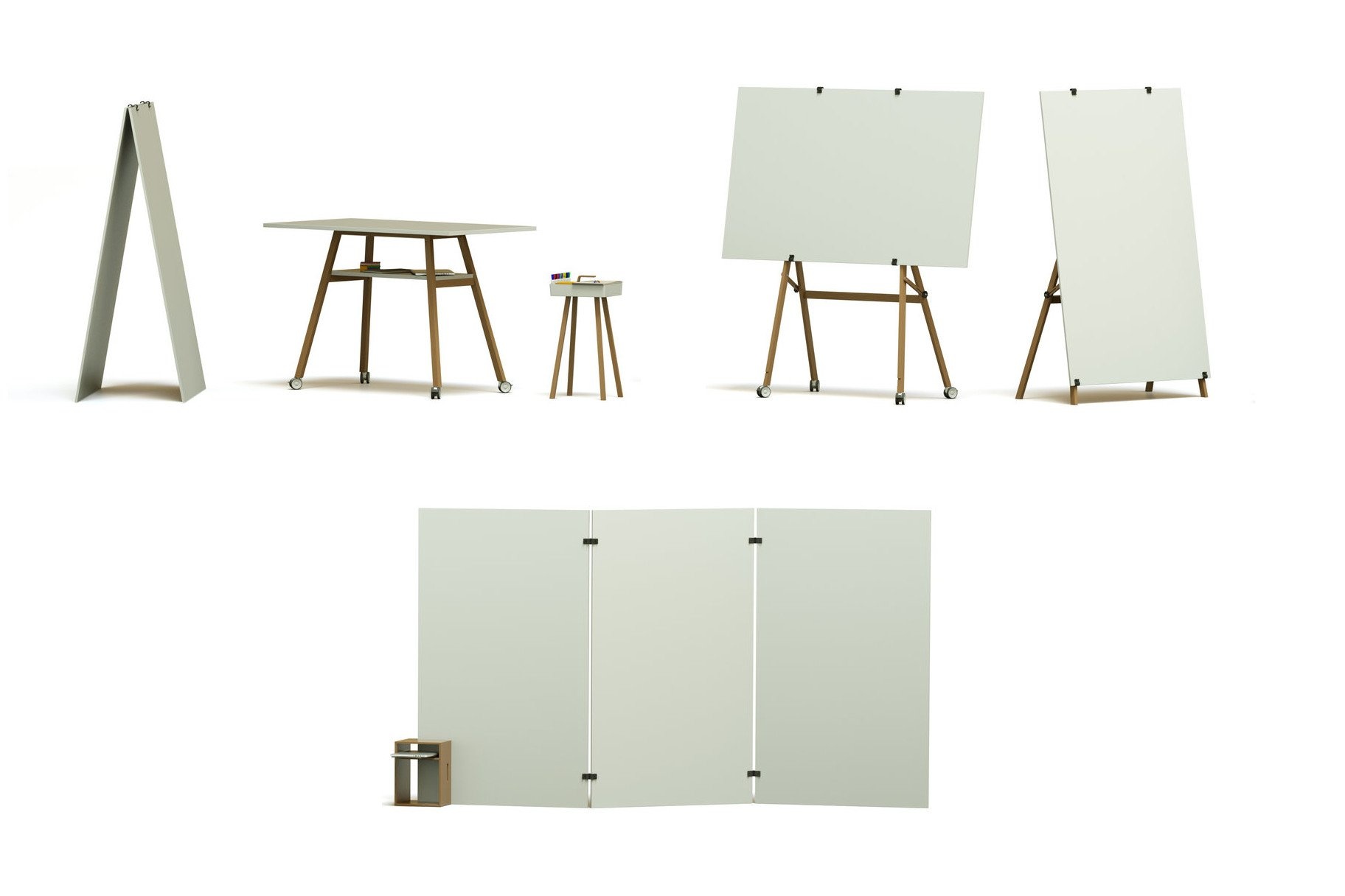 De set bestaat uit diverse individuele producten die ook los verkrijgbaar zijn, zoals losse whiteboards, whiteboards die op ezels te plaatsen zijn of te koppelen zijn aan elkaar.