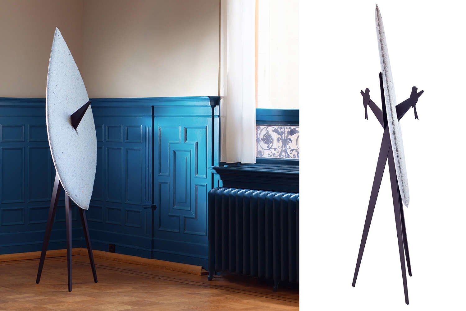 Dit akoestische scherm is multifunctioneel. Het dempt geluid, maar is daarnaast ook als prikbord, kapstok en magnetisch frame (vogelmagneten) te gebruiken.