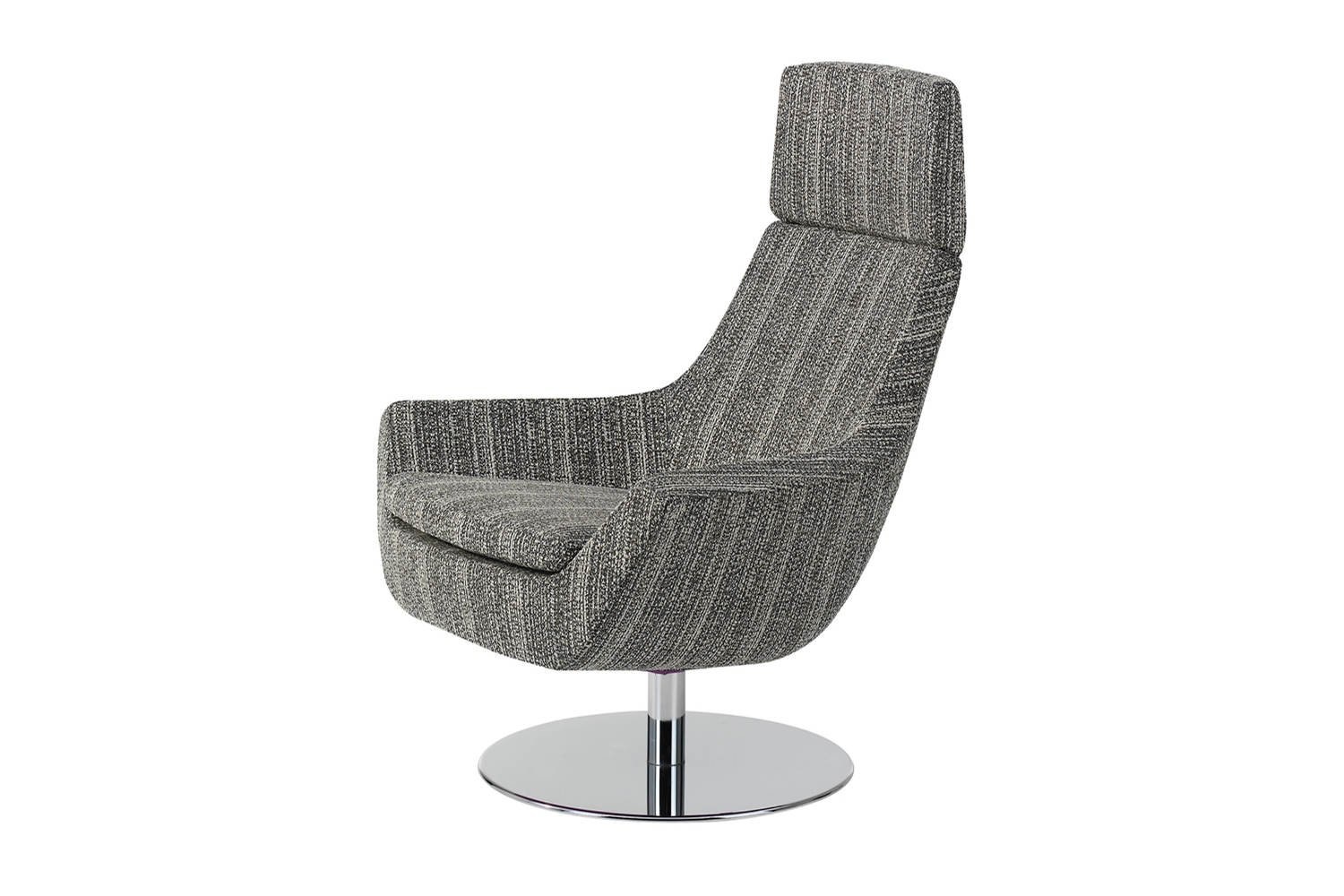 Swedese Happy Swing is een klassieke fauteuil die zeer comfortabel zit. De fauteuil is verkrijgbaar met een hoge of lage rugleuning, en met of zonder voetenbankje. Het frame van de Happy Swing heeft een stalen buis waaronder een 5 teens stalen draaivoet of stalen schrijf draaivoet in chroom afwerking of gelakt zilvergrijs zit. De fauteuil kan ook voorzien zijn van een roestvrij stalen slede onderstel, sledestoelen. De vulling is van gegoten koudschuim en pascal pocketveren. Materialen