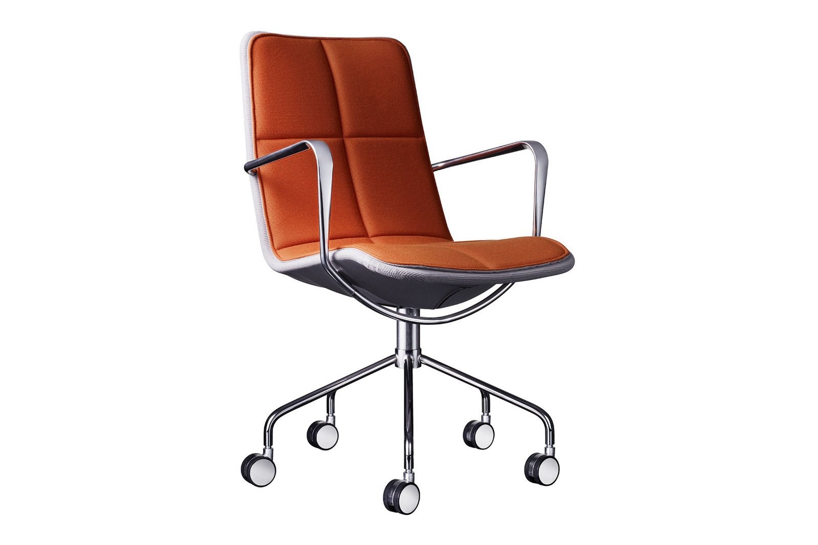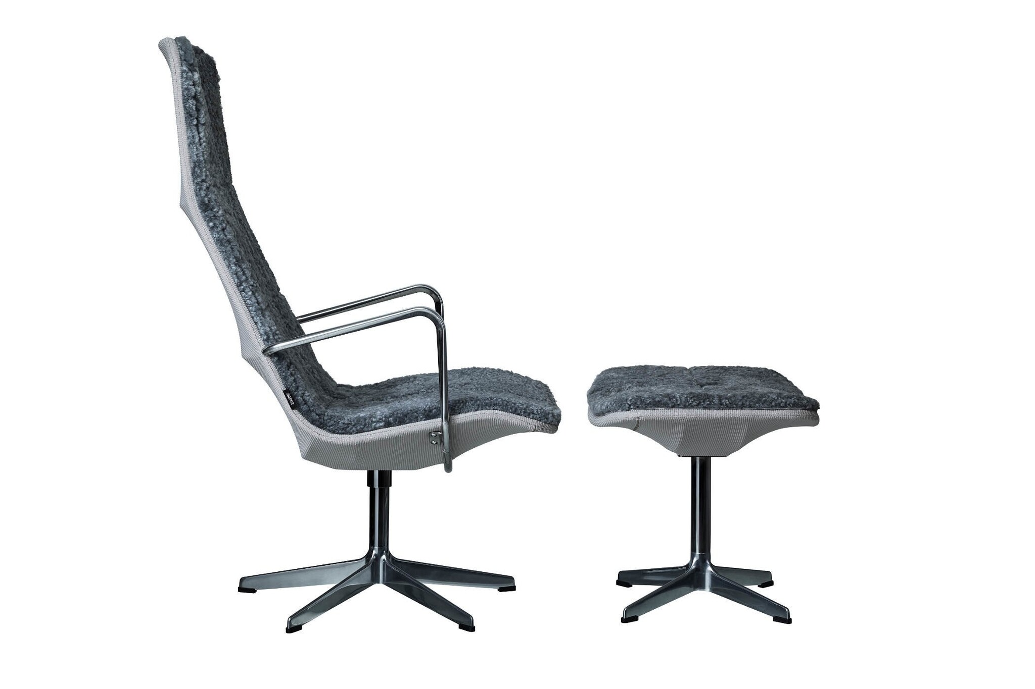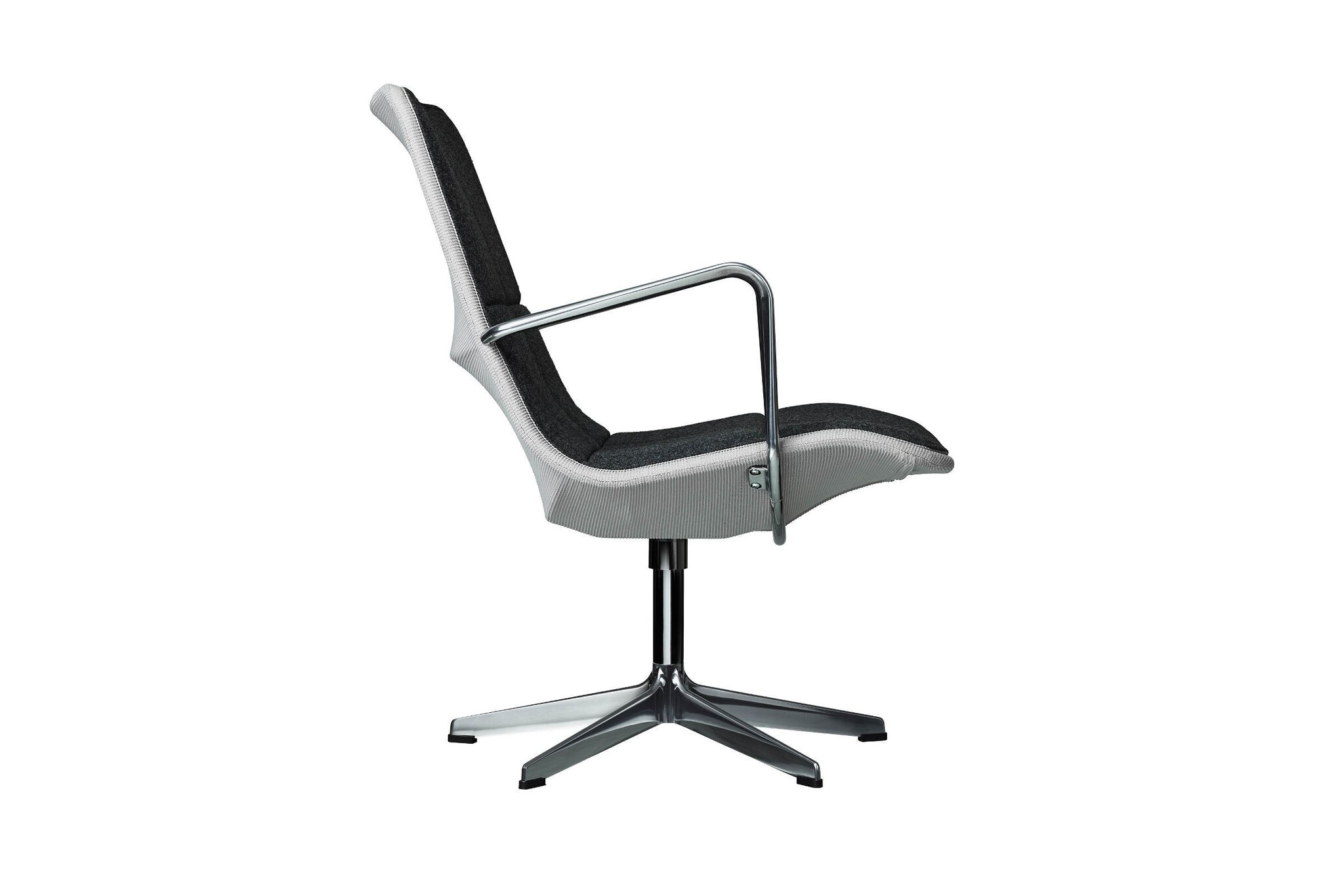 Swedese Kite fauteuil is een eenvoudige fauteuil geïnspireerd door de bouw van een vliegtuigvleugel . De nieuwe fauteuil is ontworpen door Broberg & Ridderstrale en heeft een ingenieuze constructie en een eenvoudige opzet. De stoel is te leveren in het zwart of lichtgrijs en voorzien van een 5-sterren draaivoet. Over het stalenframe zit het zwarte of lichtgrijze net gespannen. Het basismodel kan uitgebreid worden met armleuningen, nekkussen en een gestoffeerde zitting en rug. Het onderstel is in gerecycled, gegoten aluminium in gepolijst helder, wit of zwart gelakt.