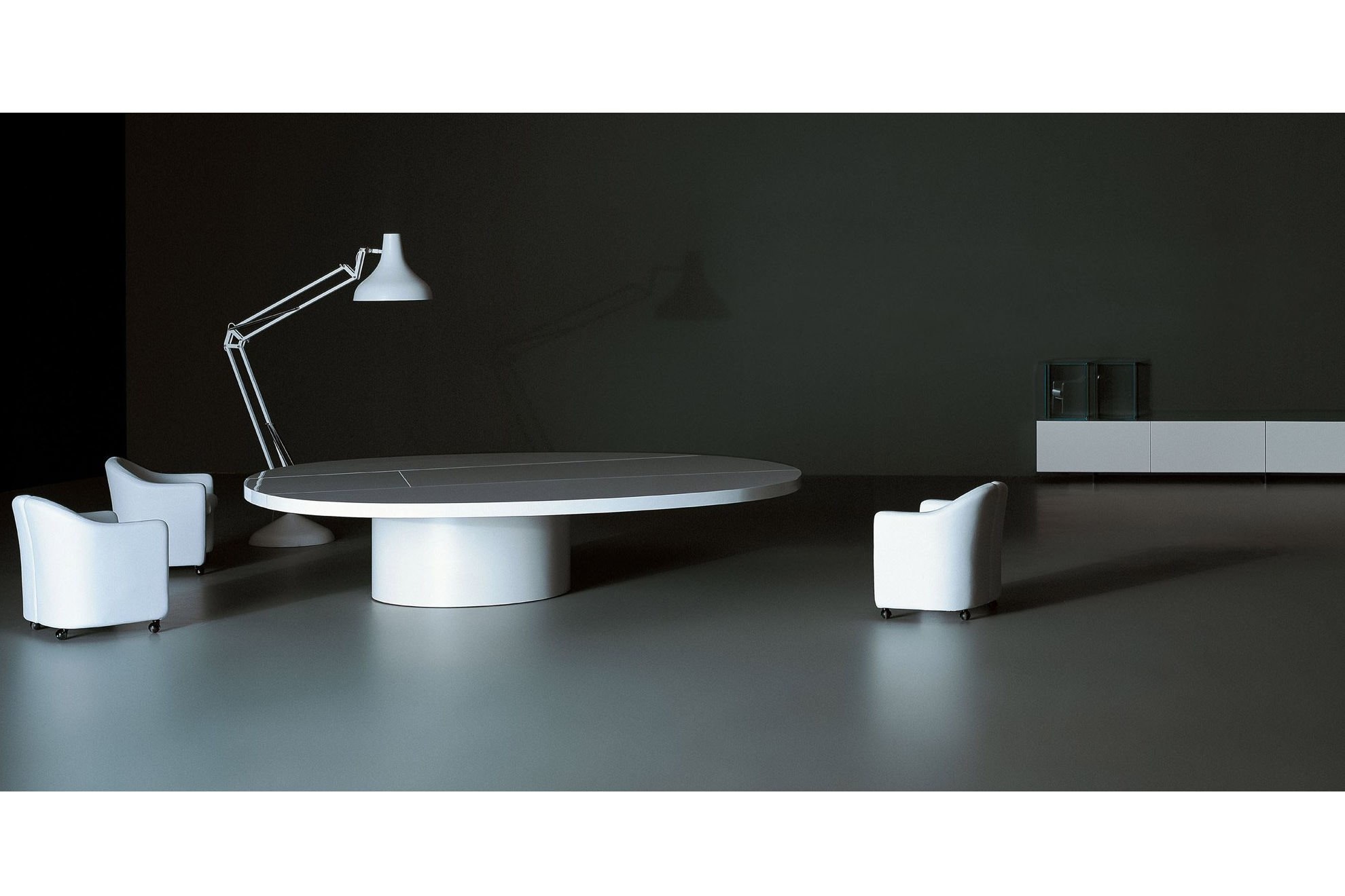Piero Lissoni is de ontwerper van de Tecno Asymmetrical. De tafels kunnen gecombineerd worden tot grote werkplekken, vergadertafels of bureaus waar alles direct bij de hand te vinden is. De bureaus en vergadertafels zijn verkrijgbaar in een keuze van de combinaties en afmetingen. De werkbladen van de Tecno Asymmetrical kunnen worden afgewerkt in mat of glanzend wit en donker grijs gelakt of in lichte, medium of donker eiken, grijs en donkerbruin. De vergadertafels kunnen worden gelakt in hoogglans wit en donker grijs of mat wit en donkergrijs.