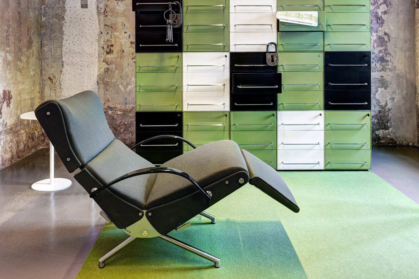 Tecno P40 fauteuil is inmiddels een van de vele archetypen in de wereld van kantoormeubilair, die Tecno gecreëerd heeft. Ontworpen door Osvaldo Borsani combineert de P40 fauteuil ergomonie, design en functionaliteit. Tecno P40 fauteuil, met bewegende delen.In hoogte verstelbare rugleuning. Auto-aanpassing van armleuningen.