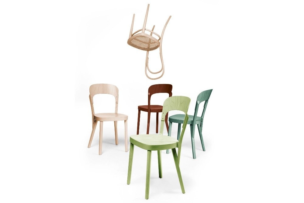 Thonet 107 stoel is bijzonder geschikt voor de inrichting van restaurants en café's vanwege de elegante, solide en lichte uitstraling. Door zijn eenvoudige vormgeving past de stoel ook goed in uw eethoek thuis. Thonet 107 heeft een massief houten frame, zonder armleuningen, zitting en rugleuning van voorgevormd multiplex in beuken naturel of gebeitst. Zitting van hout of gepolsterd en voorzien van stoffen of lederen bekleding. Met glijders voor harde en zachte vloeren.