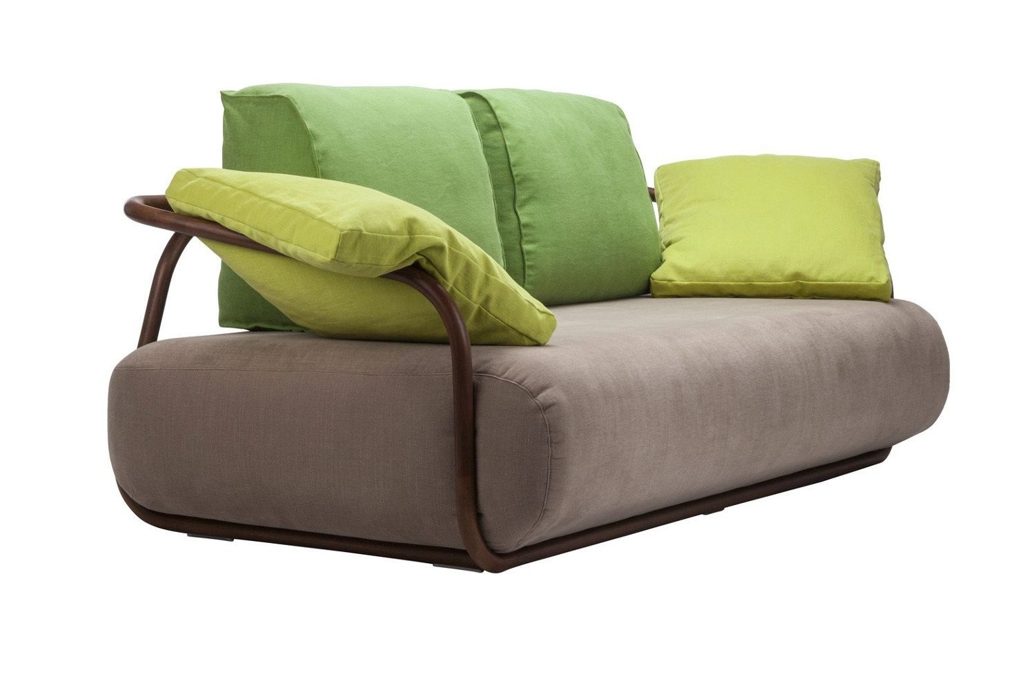 Bank van gebogen hout (2002/C002 inclusief 2 rugkussens 2011 en 2 zijkussens 2012):