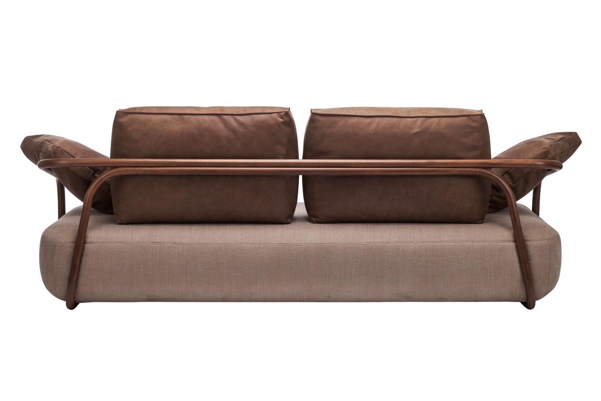 De Thonet 2000 bank is gemaakt van gebogen hout. De volumineus gevulde zitting die tot de grond doorloopt wordt omspannen door een frame van gebogen hout, waardoor het geheel een lichte indruk maakt. Bij de bank horen losse, apart verkrijgbare rug- en zijkussens die individueel met elkaar gecombineerd kunnen worden. Ze kunnen zo worden geplaatst dat het ranke houten frame zichtbaar is, wat zorgt voor een lichte uitstraling en een bijzonder effect aan de achterkant. De minimalistisch vormgegeven bank zit bijzonder prettig en is geschikt voor een gezellige zitplaats, wachtruimte of entree in moderne kantoren.Gebruikte materialen