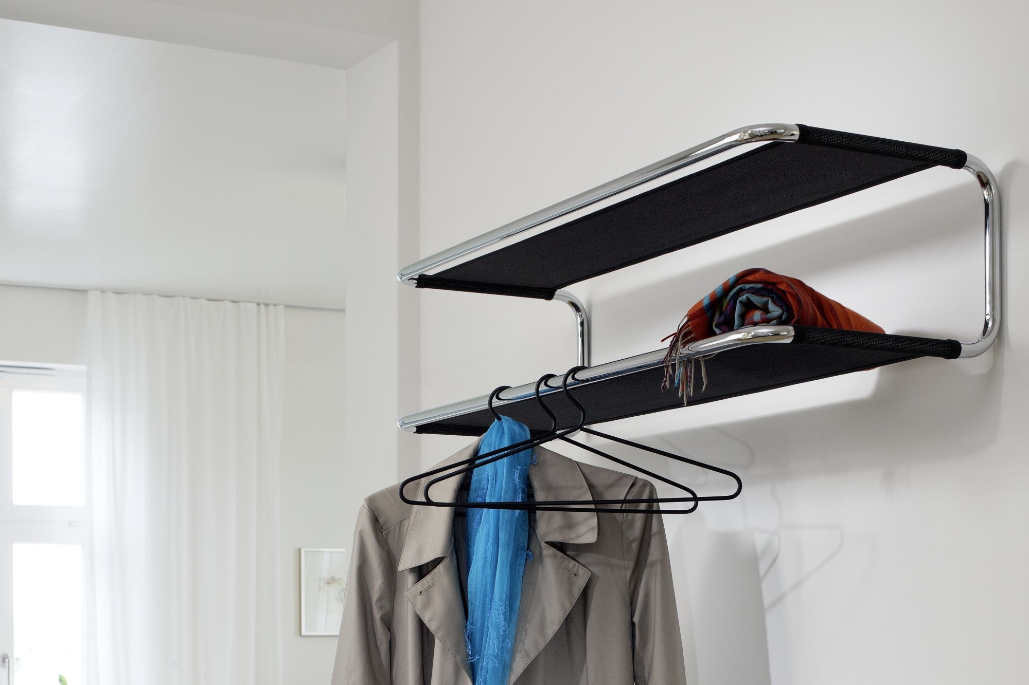 Thonet S1520 kapstok is gemaakt van stalen buizen. De stalenbuizen zijn dragers van netwavebespanning, dit is ideaal voor het plaatsen van hoeden, tassen en schoenen. Tot de wandgaderobe serie behoren die verschillende modellen; Thonet S1520: wandgaderobe met hoedenplak en 10 haken. Thonet S1521: schoenenkast en wandboard. Thonet S1522: wandgaderobe met memoboard.