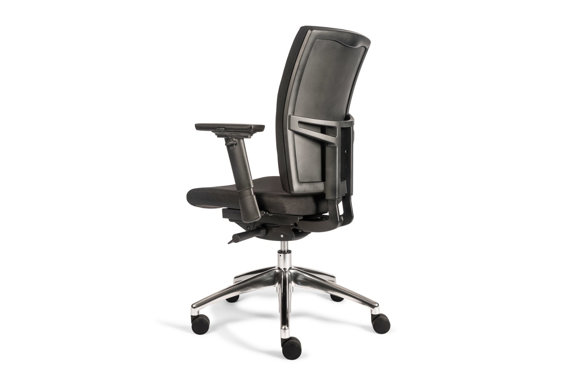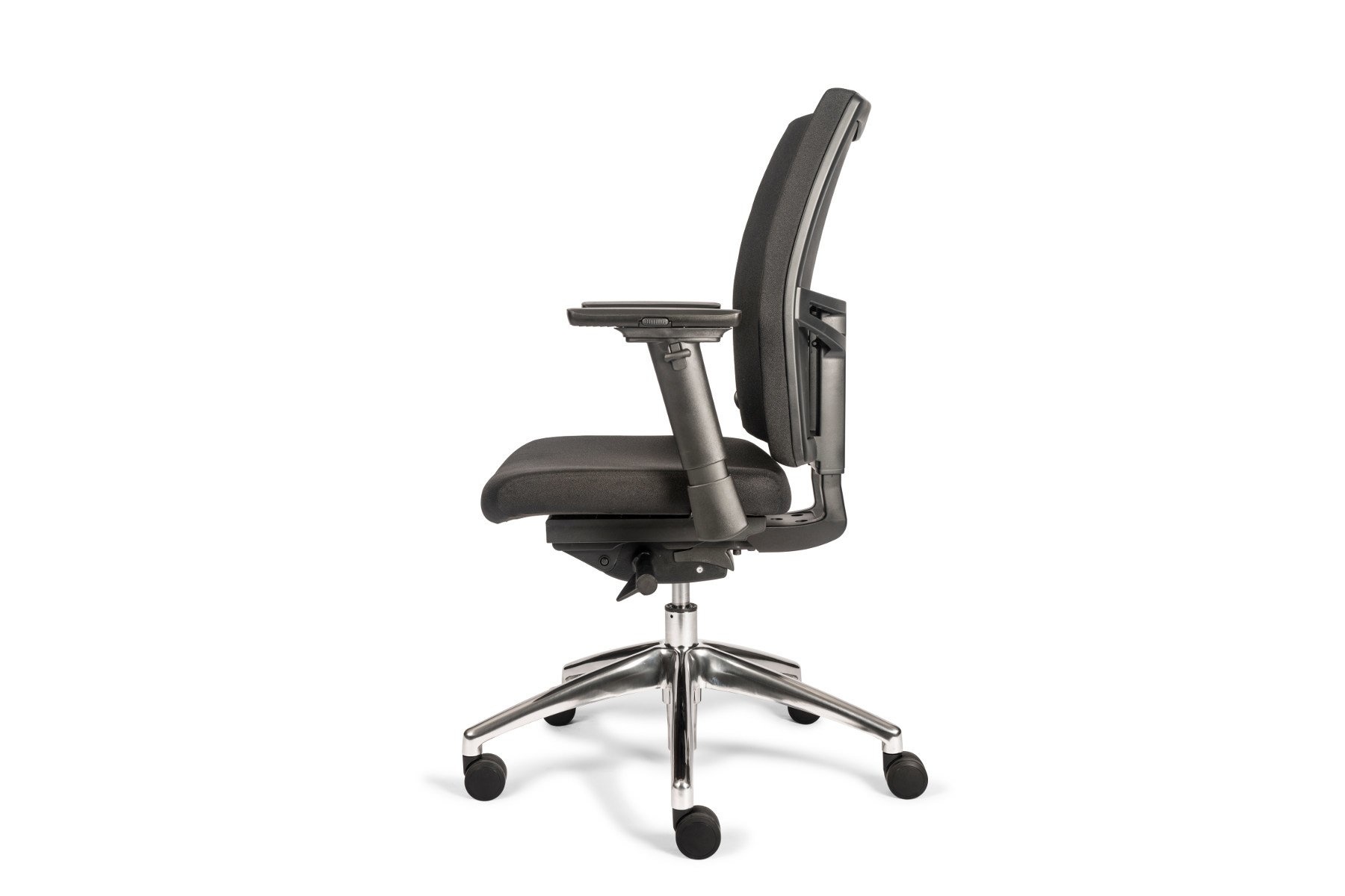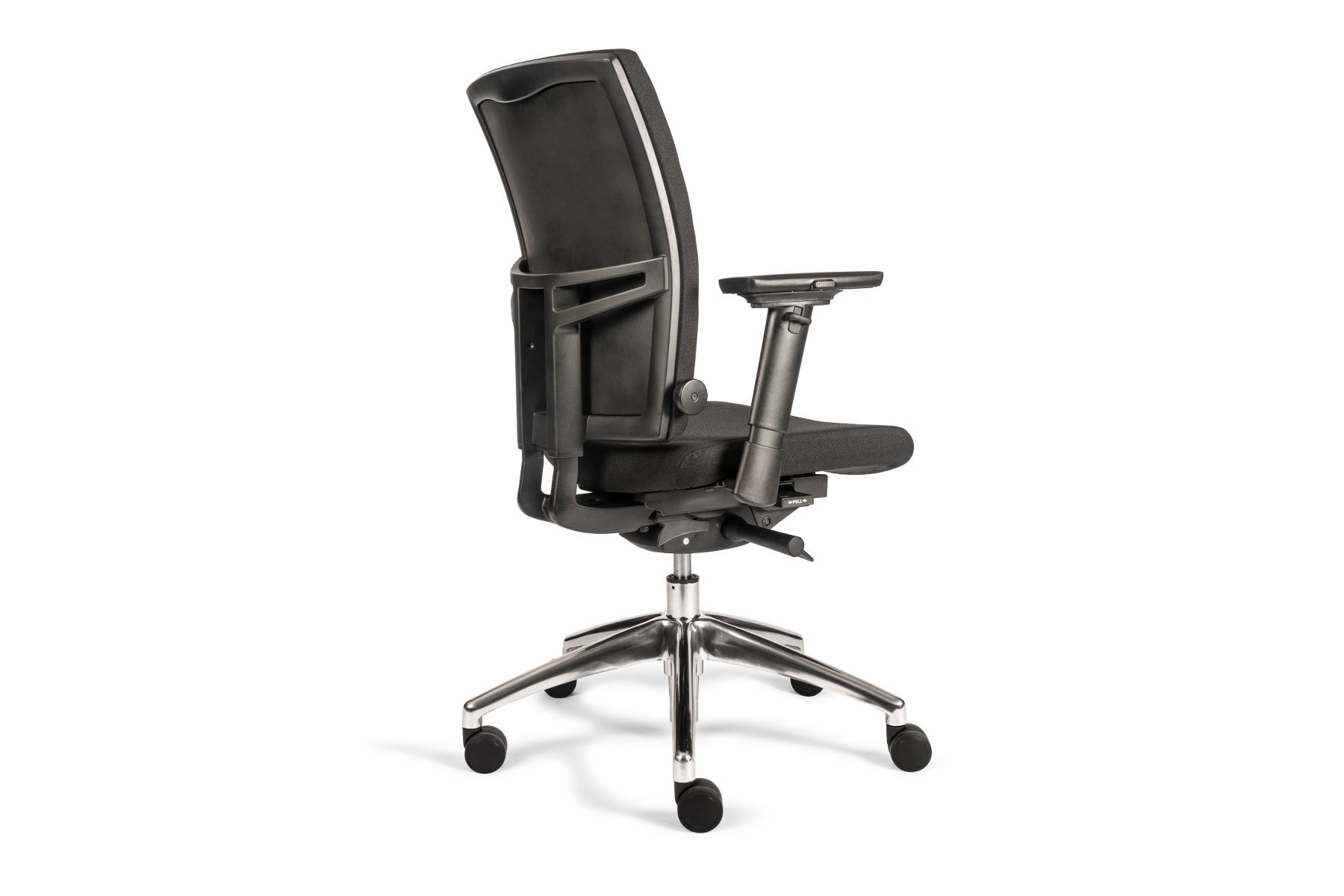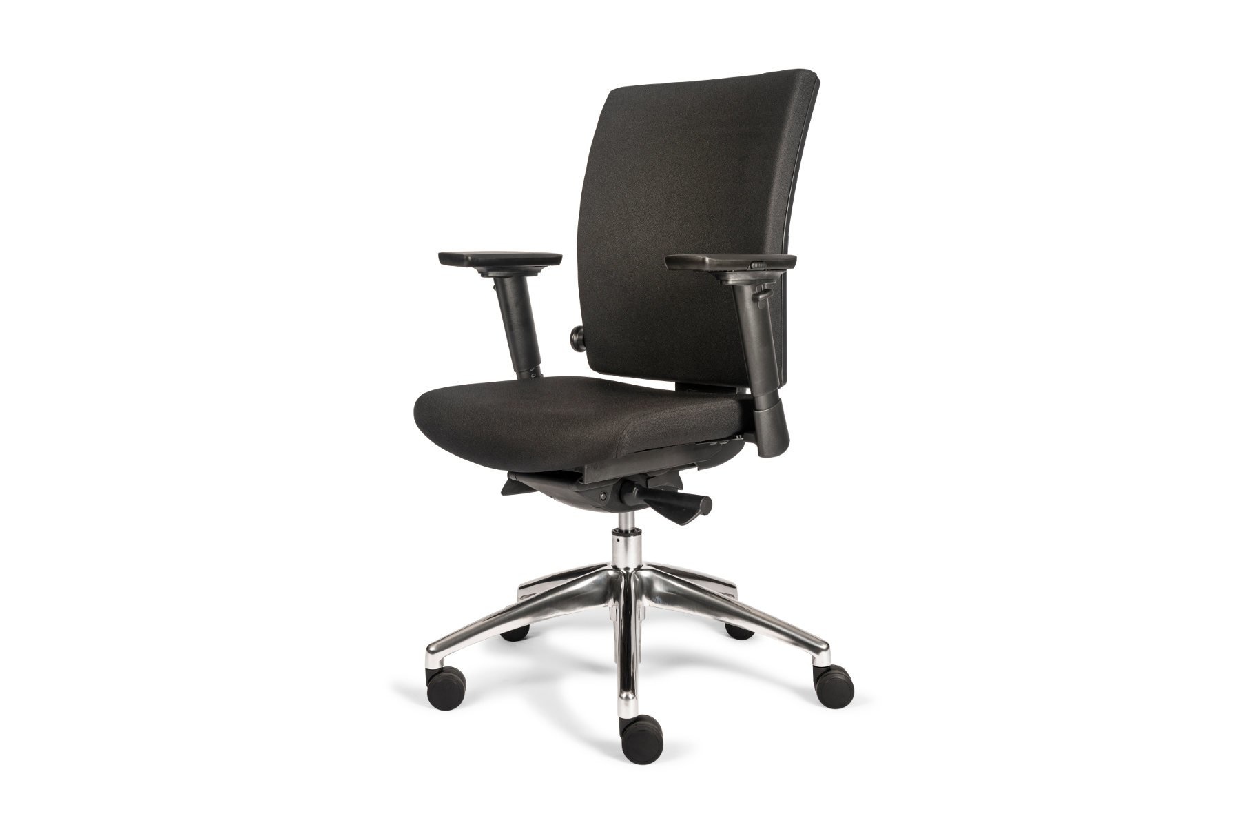 De Tint Bureaustoel Automatic Gestoffeerd is, zoals de naam al doet vermoeden, verkrijgbaar met een gestoffeerde rugleuning en zitting. Kunststof armleuningen en een gepolijst aluminium onderstel.