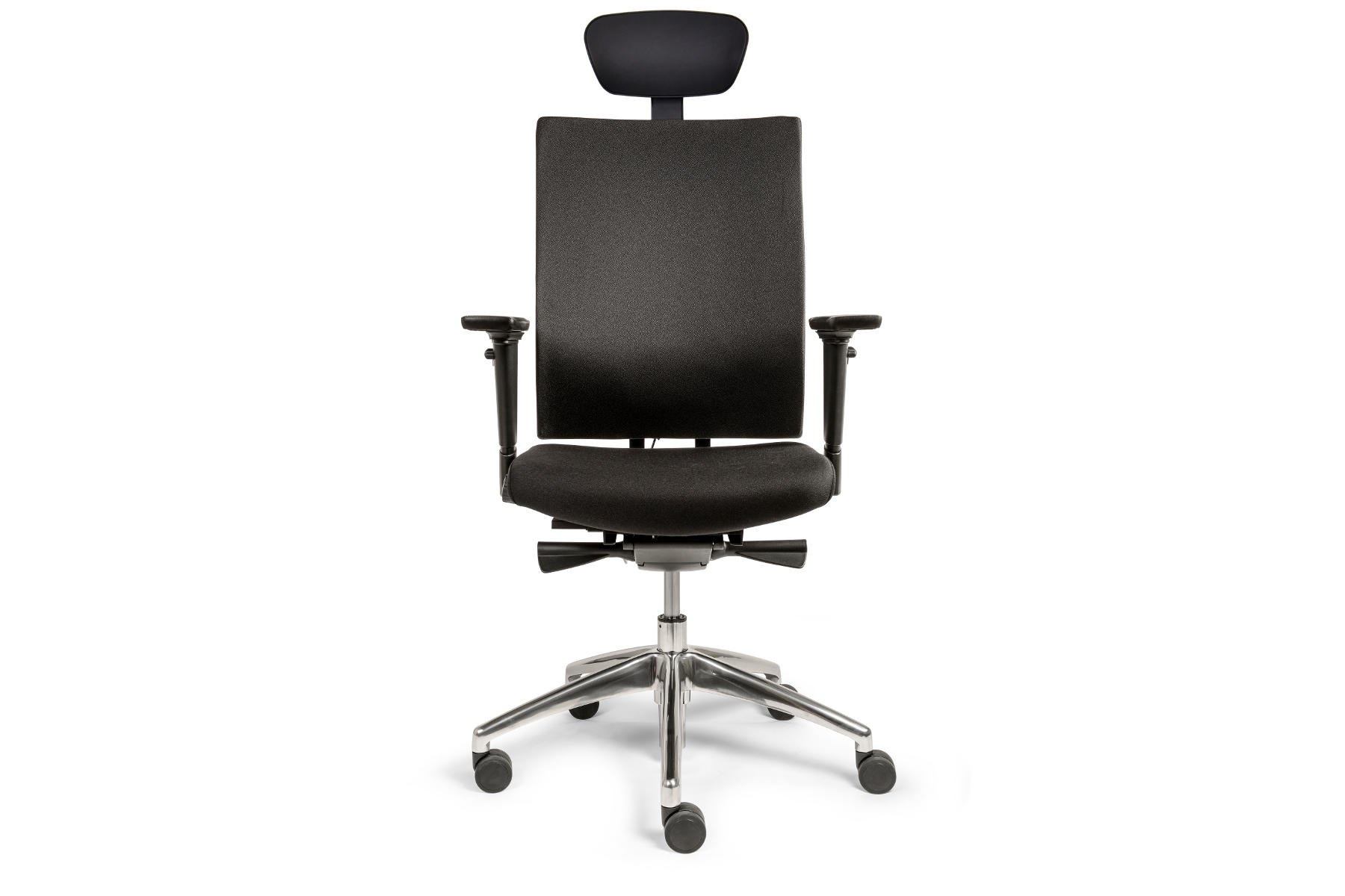 De Tint Premium Comfort bureaustoel is volledig gestoffeerd van de stof Oasis (zwart). Optioneel te bekleden in andere kleuren stof, in leer of kunstleer. Het onderstel is aluminium gepolijst en de armleggers zijn van kunststof.