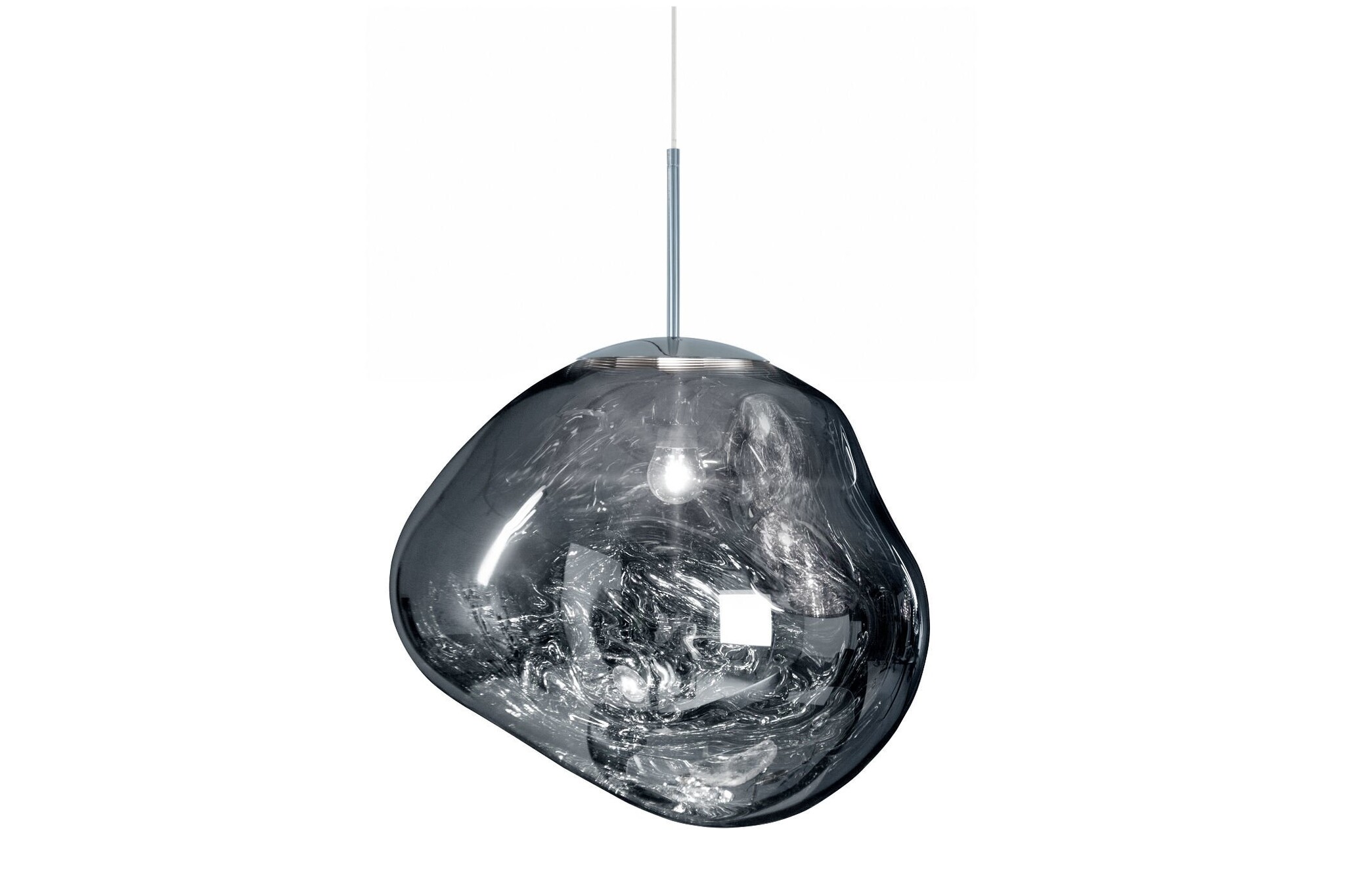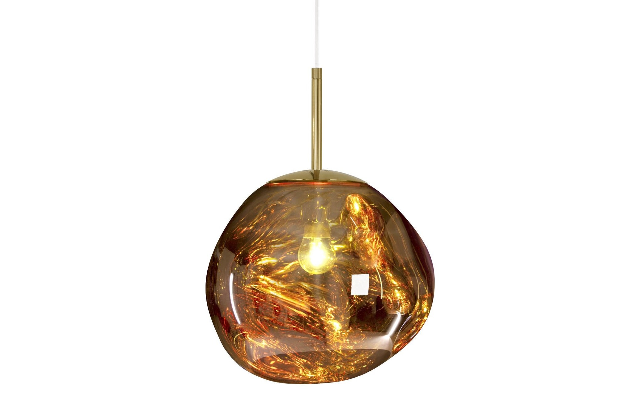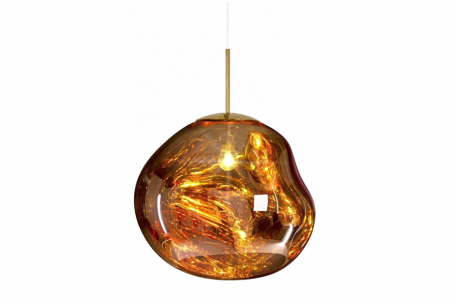 Doordat de Melt verkrijgbaar is in verschillende afmetingen en afwerkingen, zoals chroomkleurig, goudkleurig en bronskleurig kun je er eindeloos mee spelen door allerlei combinaties te maken, maar uiteraard kan de Tom Dixon Melt lamp alleen ook goed opgehangen worden.