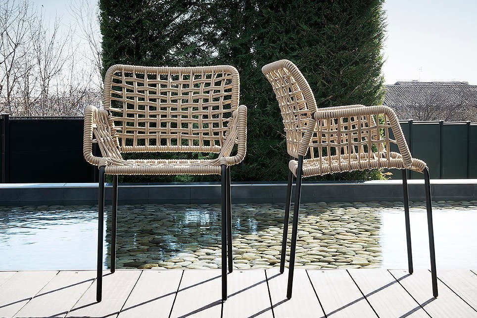 De Tonon Corda stoel is binnen en buiten te gebruiken. Leverbaar met of zonder armleuningen en de stoelen zijn per 6 stuks stapelbaar. Dat is ook nog eens ruimtebesparend. De zitting is gemaakt van 100% polyester en is weersbestendig, ook in de winter! De stoel is ontworpen door Cuno Frommherz. Afmetingen van de Tonon Corda stoel