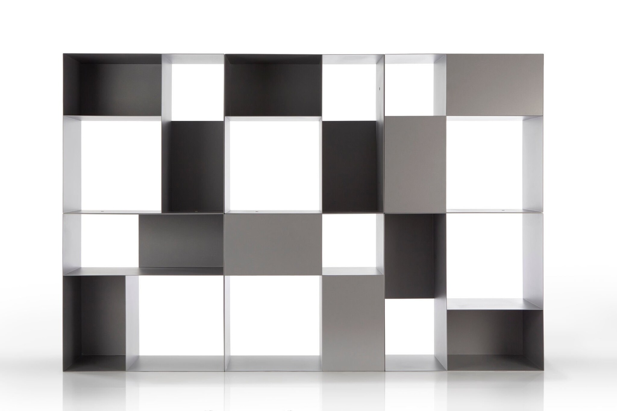 Trilogy Boxx is een modulair boekenkastsysteem en is geschikt voor op kantoor of voor in winkels. De stellingkast is volledig gemaakt van duurzaam gepoedercoat metaal. De kast bestaat uit verschillende blokken in verschillende afmetingen die samen één grote kast kunnen vormen. U kunt kiezen of u de blokken open wilt houden of dichtmaakt. Dit geeft een speels effect.