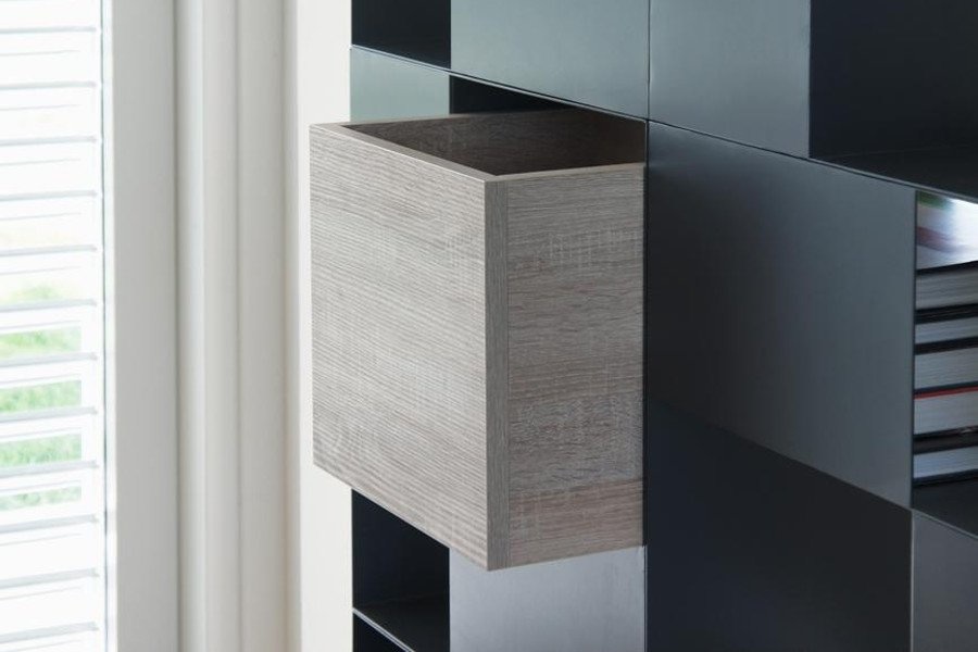 Door de diverse blokken op te bouwen tot een modulaire kast.