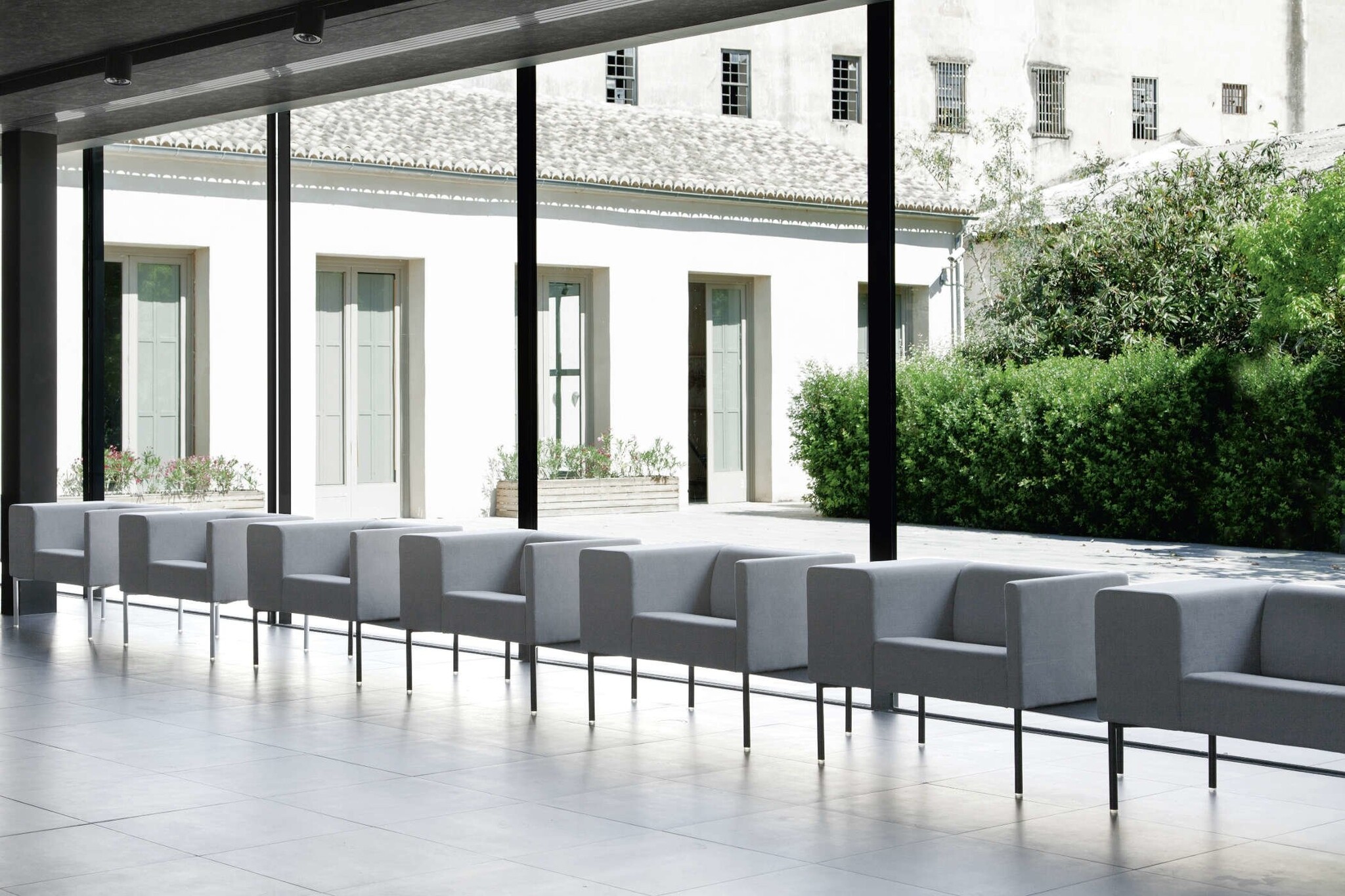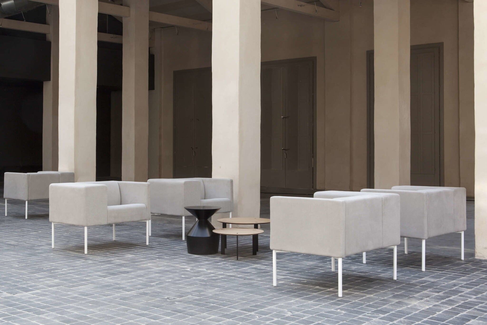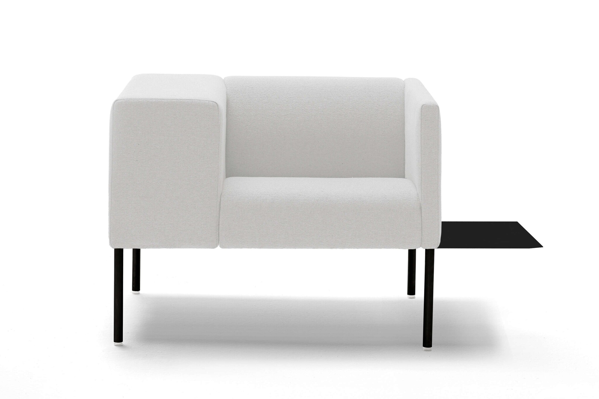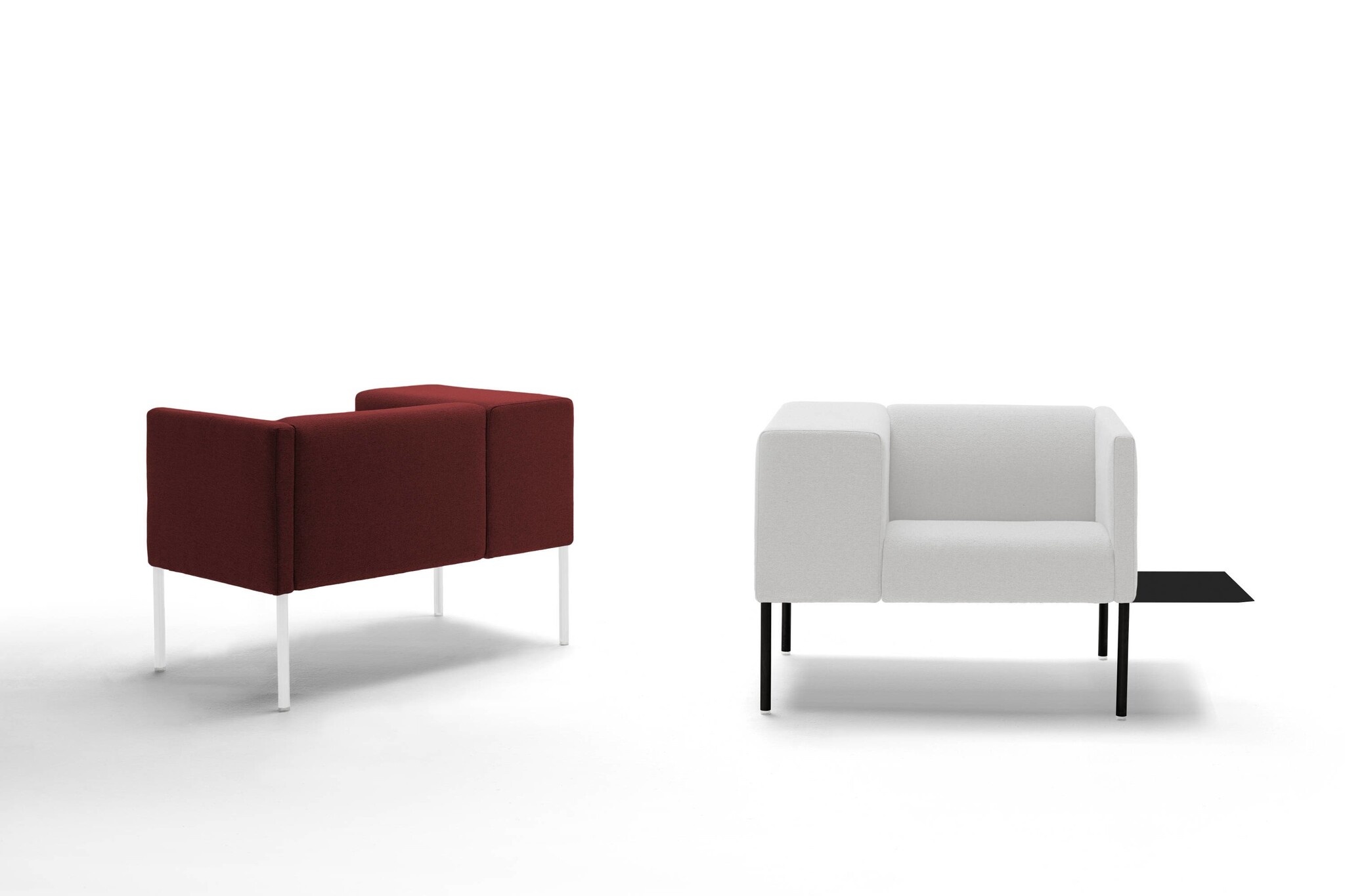 Viccarbe Brix fauteuil heeft een massief houten basis, bedekt met MDF met niet vervormbare polyurethaanschuim en polyester vezels. Het gekalibreerde stalen onderstel is gelakt in thermohardende epoxy polyester in het wit of zwart. De poten zijn voorzien van doorzichtige plastic voetzolen. De Brix fauteuil heeft aan een zijde een brede armleuning waardoor er goed op gewerkt kan worden met bijvoorbeeld een laptop. Materialen