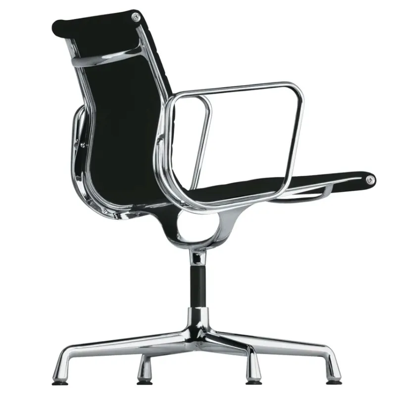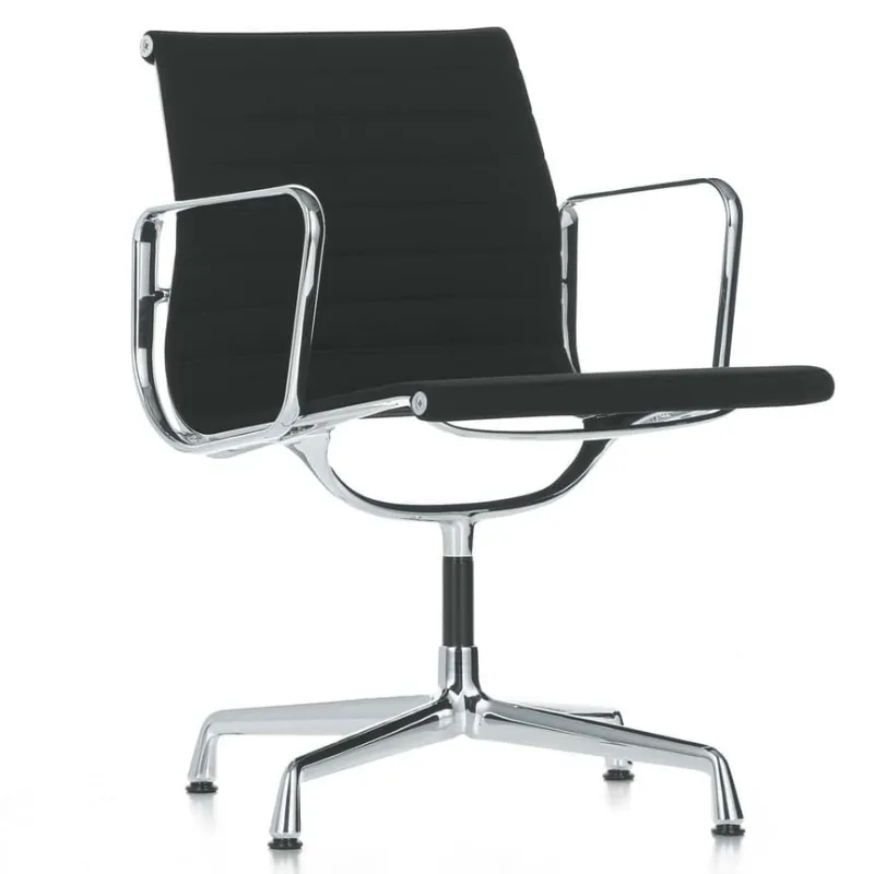 Vitra EA 108 heeft een onderstel dat vervaardigd is van aluminium. Hierdoor is de vergaderstoel makkelijk verplaatsbaar en licht in gewicht. De bekleding is uitgevoerd in een zwarte hopsak stof.