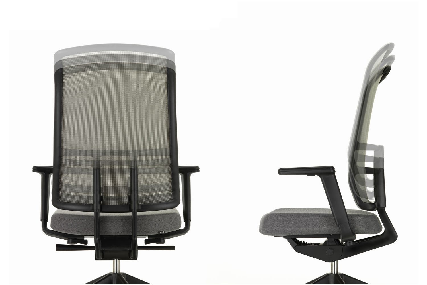 Zitmechanisme: gewichtsafhankelijk synchroonmechanisme en handmatige regeling van de weerstand van de rugleuning met 180 graden regelknop.