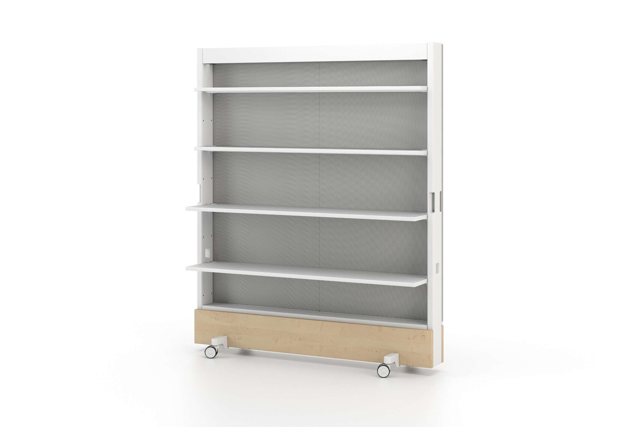 De Wall kan meerdere functies verrichten. Zo kunt u er een whiteboard of scherm in plaatsen voor presentaties op het kantoor, maar ook kunt u de wand inzetten als afscheidingsmuur met planten of als handige opbergruimte.