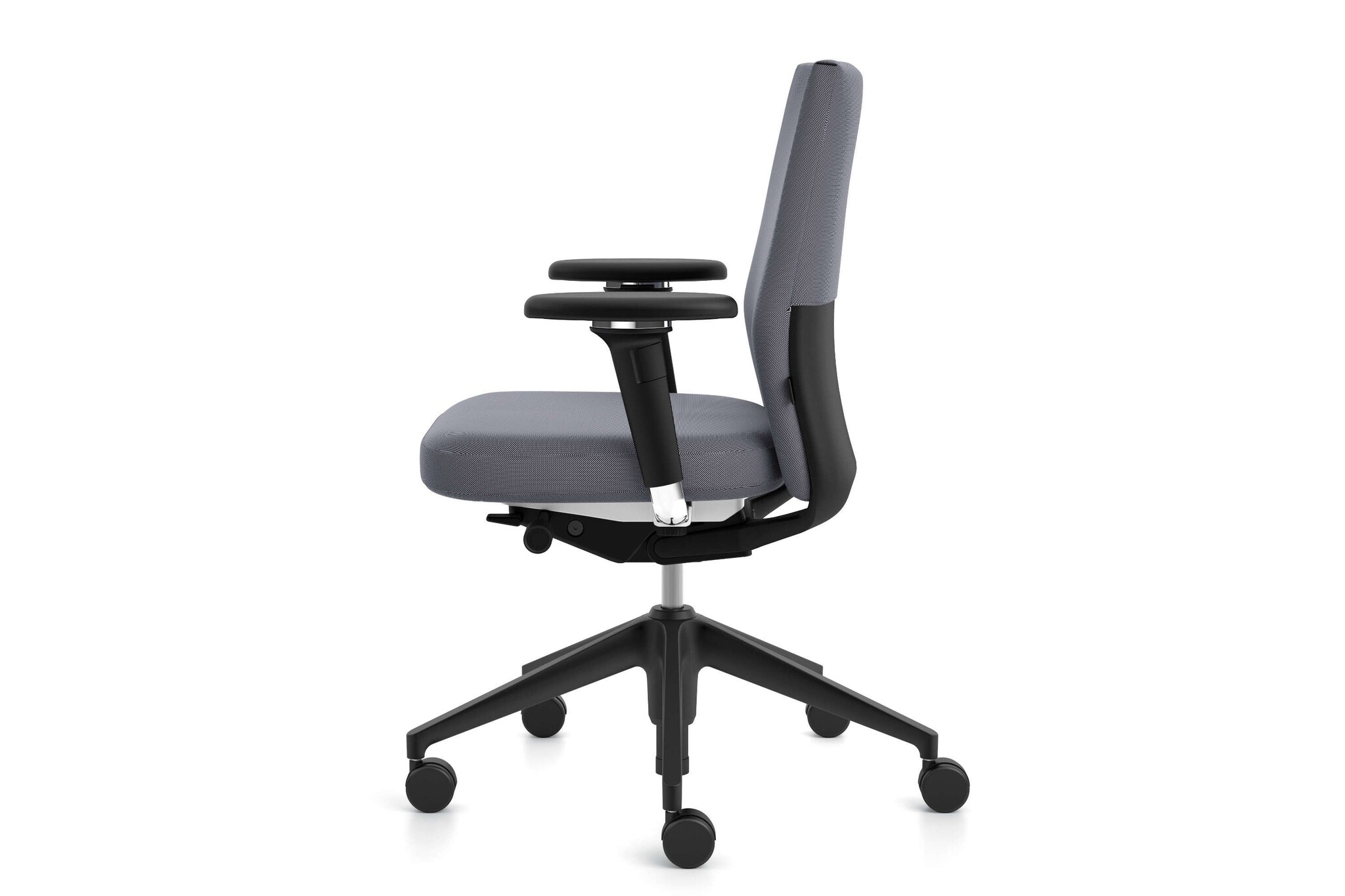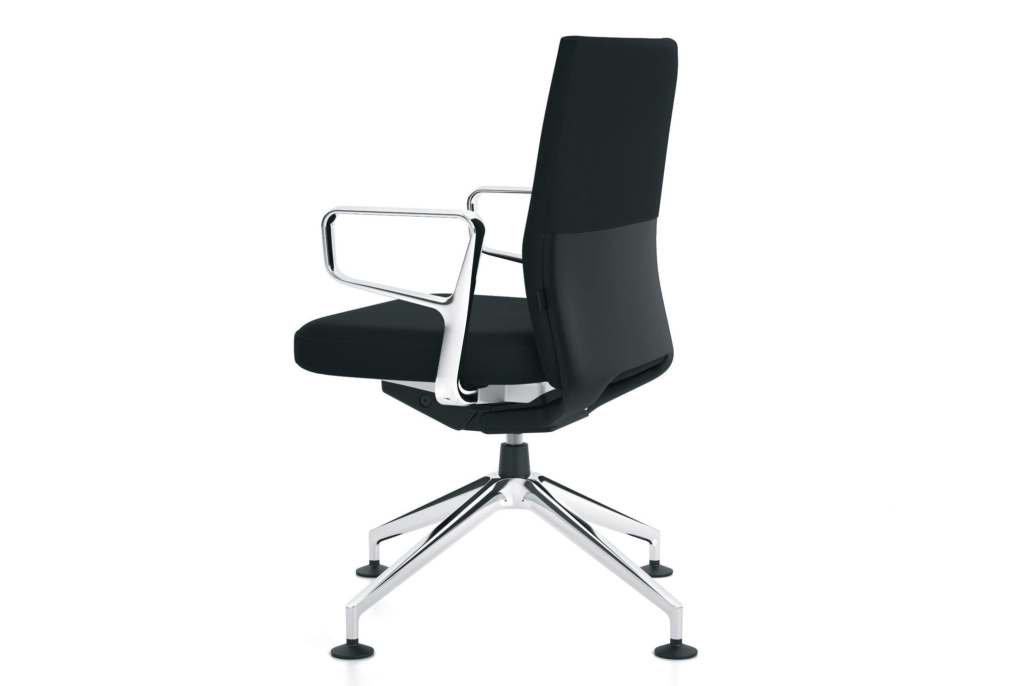 De Vitra ID Soft heeft een vijfsteronderstel van polyamide in basic dark of gepolijst persgietaluminium met zwenkwielen (ø 60mm) of glijders.