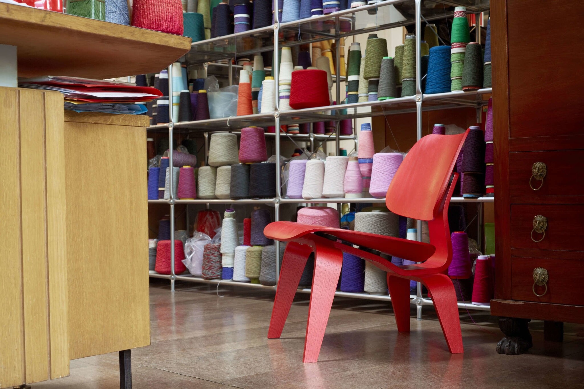 De Vitra Plywood Group LCW (Lounge Chair Wood). Deze stoel is geheel vervaardigd uit multiplex.
