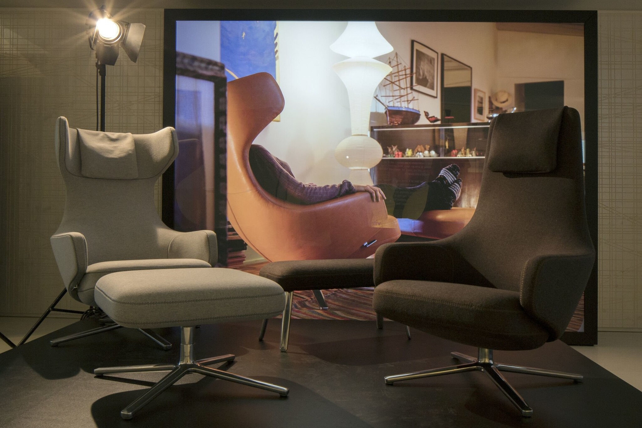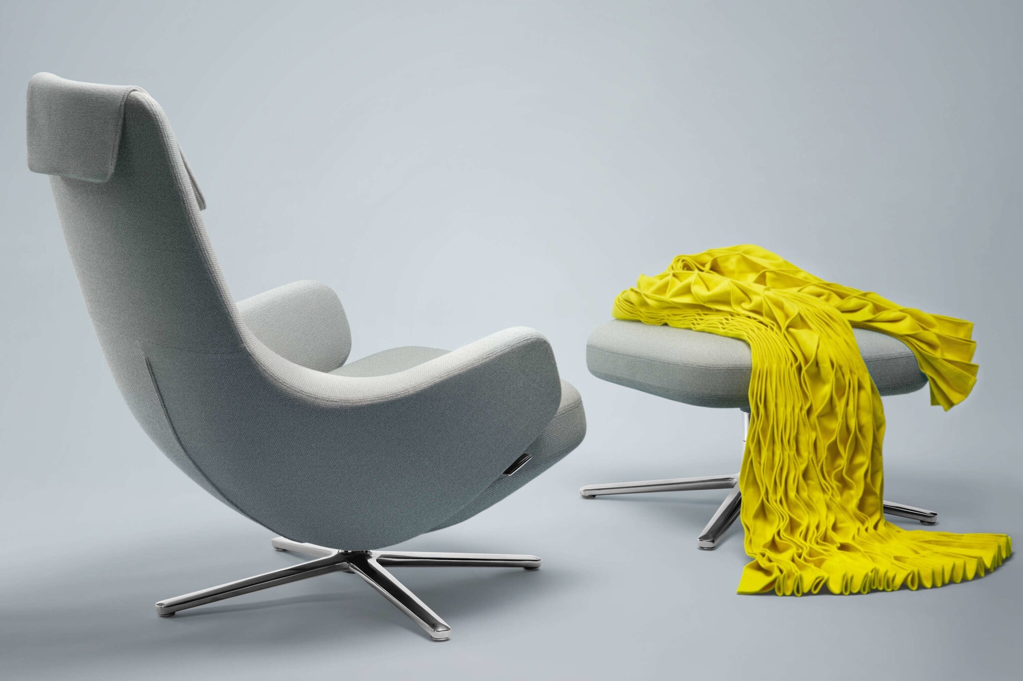De Repos heeft ook nog een grote broer; Vitra Grand Repos. Deze loungefauteuil heeft een hogere rugleuning en expressieve oren.