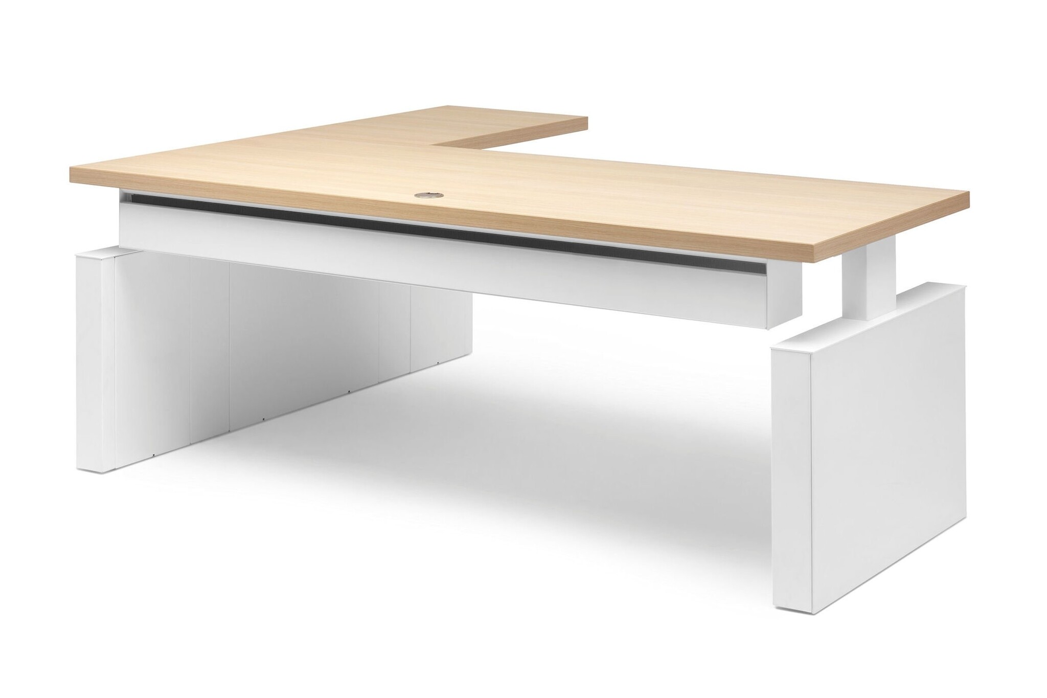 Voor vrijstaande, representatieve opstellingen combineert de kabelbox de opbergfunctie van bekabeling en stekkerdozen met visuele afscherming.