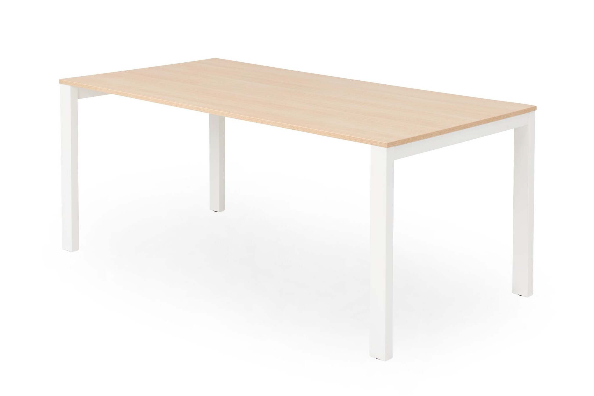 Het blad word ondersteund door een stalen traverse met twee gelaste poten (pootkolom 70 x 40 mm) hierdoor ontstaat er een open vierpootoplossing met geïntegreede bladdrager. Bij een teamtafel worden de twee bladen in het midden ondersteund door een paar poten.