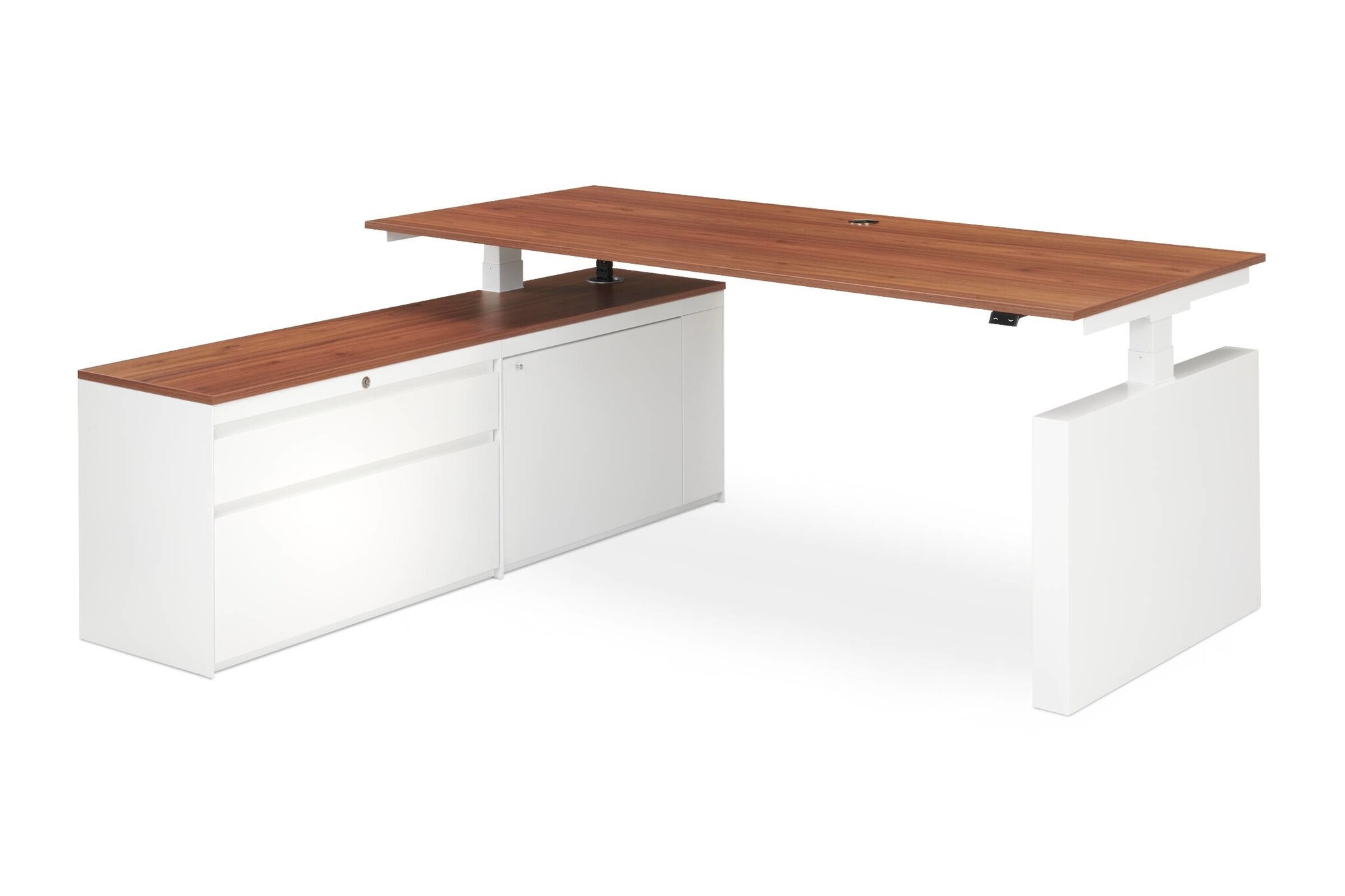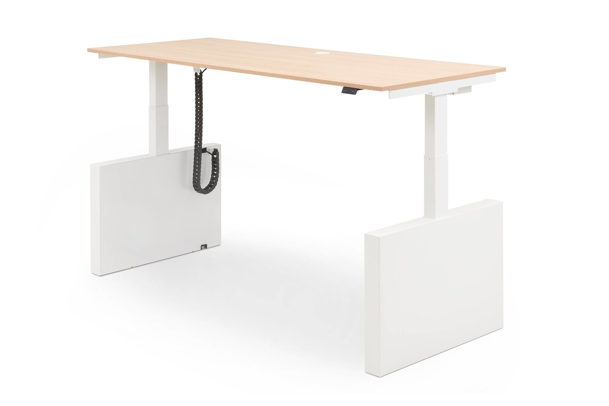 De werkplekken worden uitgevoerd met hoogte in- en hoogte verstelbare poten. Door middel van een display met hoog-laag bediening welke is weggewerkt in of onder het werkblad kan de tafel bedient worden. Het versteltraject is 65 - 130 cm en heeft een verstelsnelheid van 35 mm per seconde.