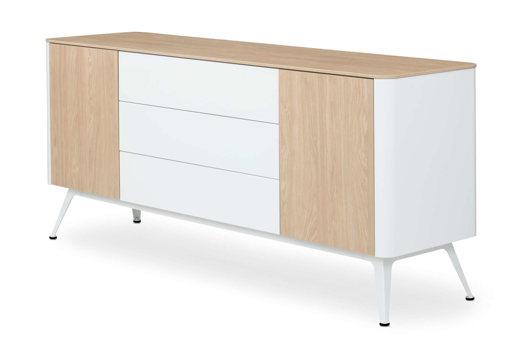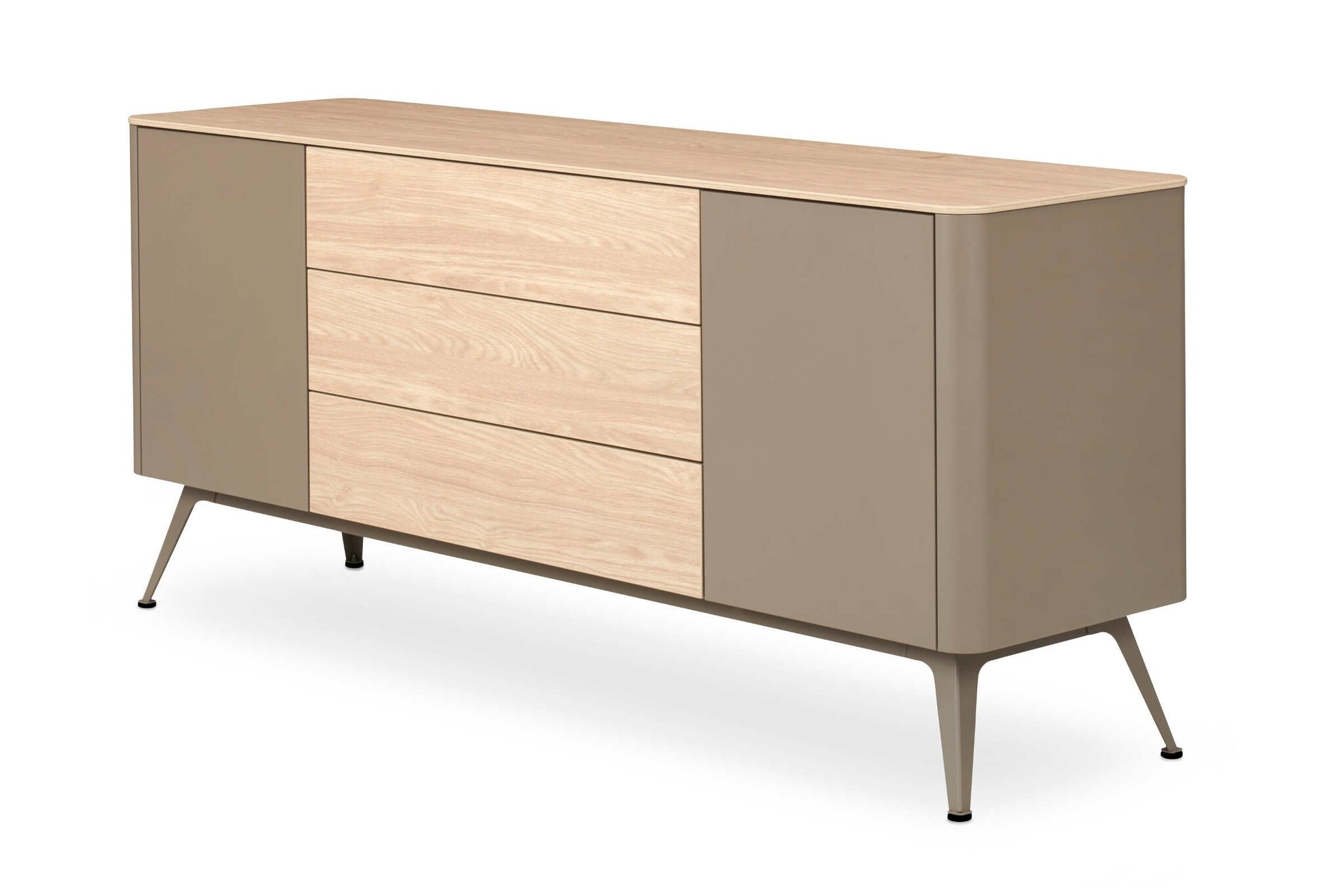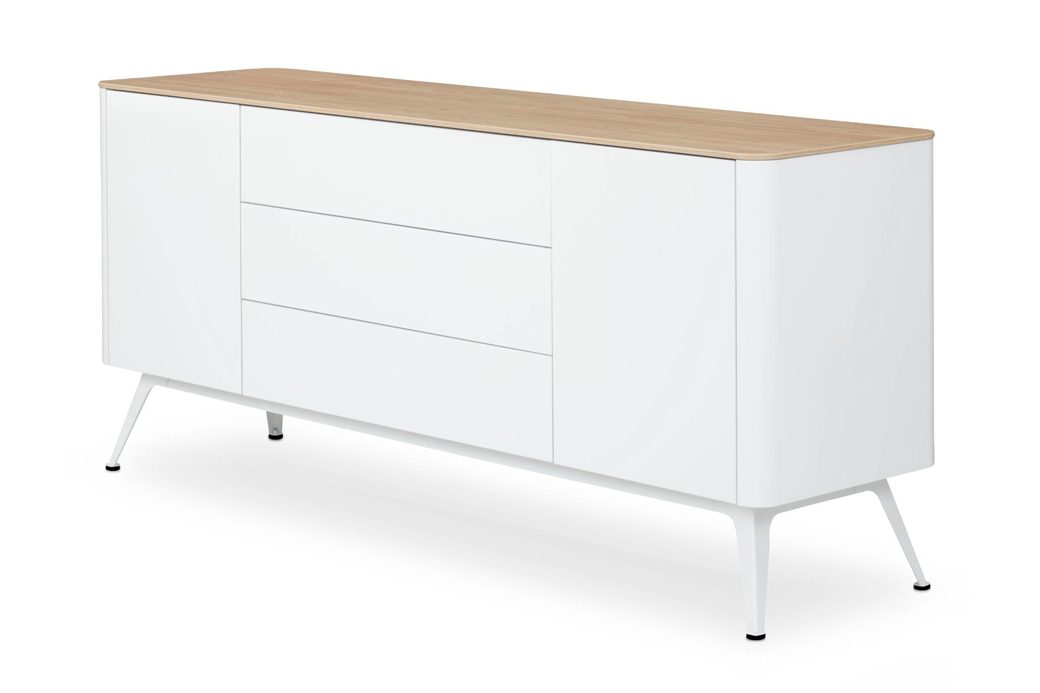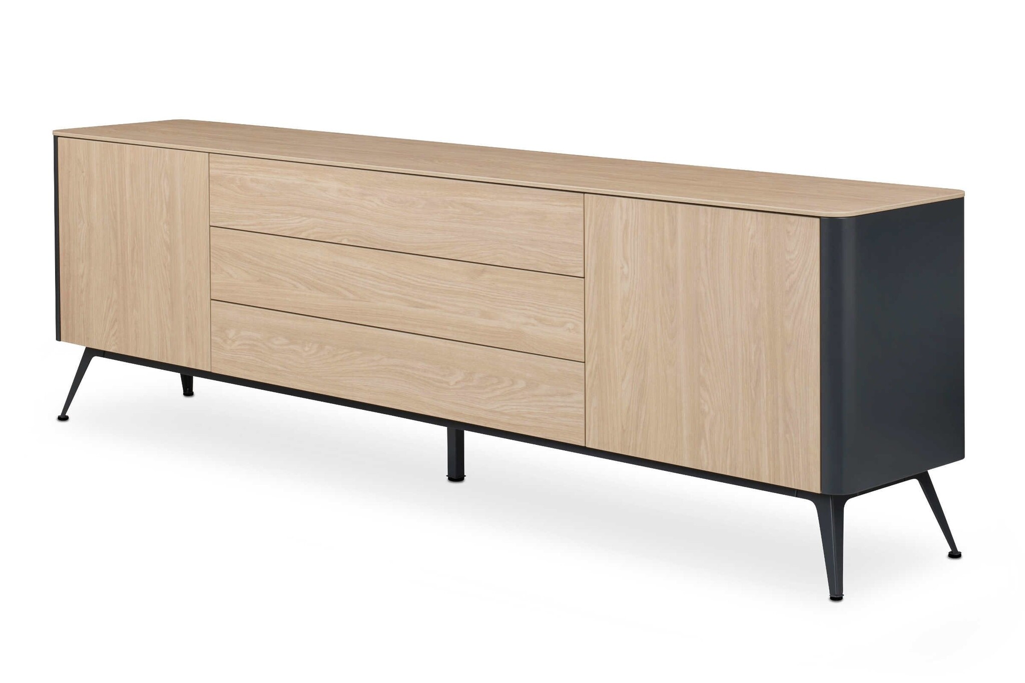 De indeling van het dressoir is naar keuze met deuren, laden of open vakken.