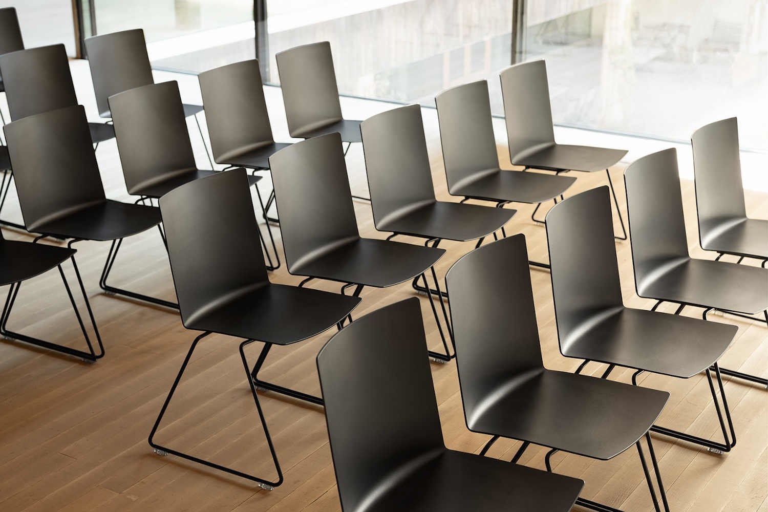 De stoel is standaard voorzien van kunststof glijders voor zachter ondervloeren, zoals projecttapijt. Optioneel zijn vilten glijders, tegen een meerprijs, te leveren voor een harde vloer, zoals hout. Kies de juiste glijders, zodat de stoelen eenvoudig over de vloer glijden.