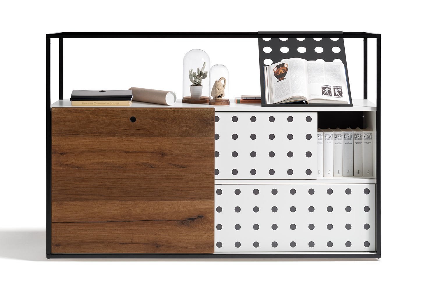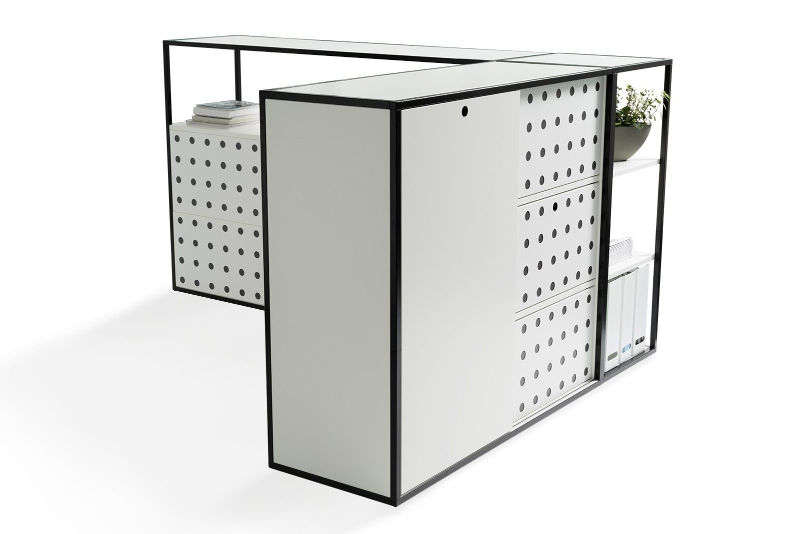 De Wiesner Hager Cage is een serie kasten, ontworpen door Neunzig Design, die de perfecte oplossing voor zowel opslag als het maken van verschillende zones in grote ruimtes. Ideaal als scheidingswandDeze serie kasten hebben tal van mogelijkheden en opties. De Wiesner Hager Cage is een echte eyecatcher en een lust voor oog in elke kantoorruimte. De kast is te gebruiken als opbergruimte maar ook als scheidingswand om bijvoorbeeld ruimten te creëren in een kantoortuin. Het Cage kastensysteem is uniek doordat de basis bestaat uit een stalen raamwerk. Hierop is ook de naam van deze kastenserie gebaseerd.