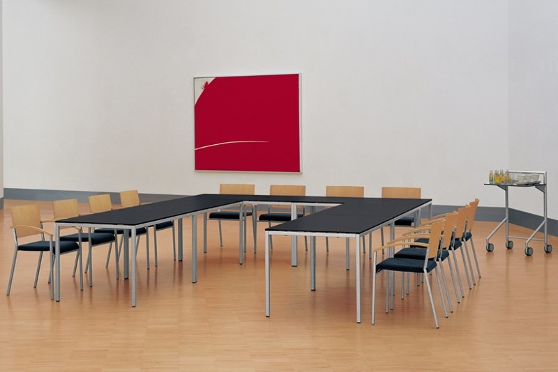 Let op: De Wiesner Hager Clip tafel voorzien van kabelschacht is niet stapelbaar.