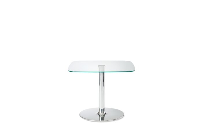 De houten oppervlakken zijn gebeitst. Tafels met bladformaat 70/70 cm, 70 cm en vrije-vorm 75/81 cm, optioneel ook met blad in helder veiligheidsglas, 8 mm dik.