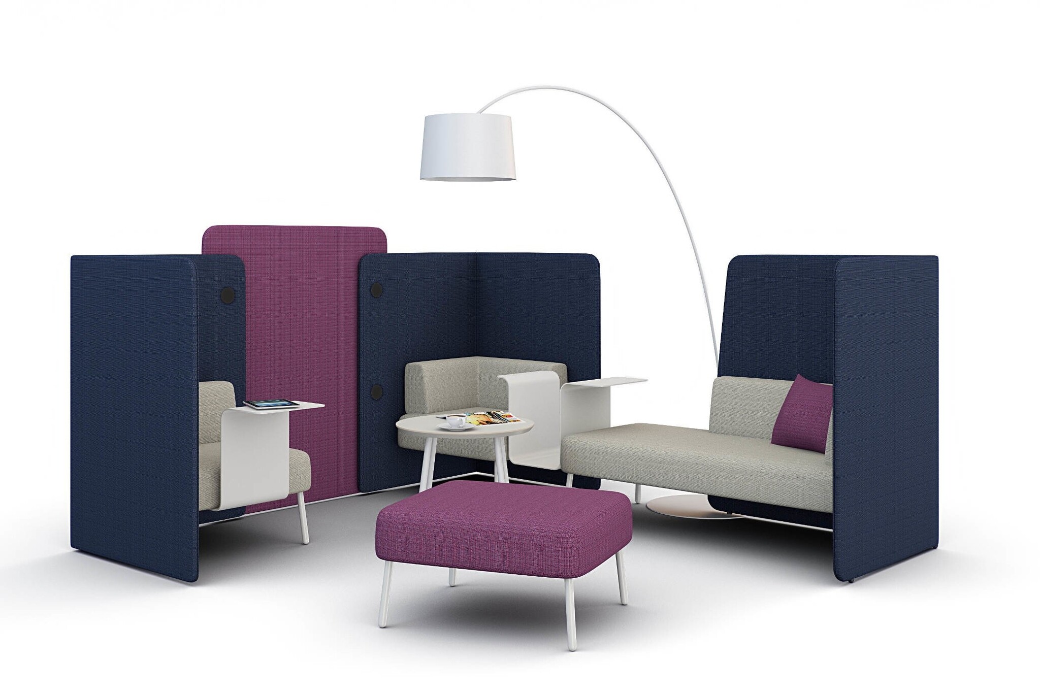 De Wiesner Hager M.zone Relaxing is samen met de M.Zone Working en M.Zone Meeting te combineren om zo een complete kantoorinrichting te creëren.