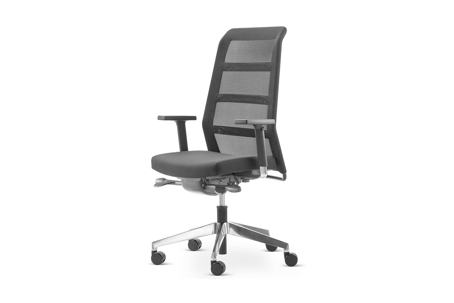 Armleggervarianten (optioneel): In hoogte verstelbare armleggers: In hoogte en breedte verstelbaar, met zachte toplaag. Dragers aluminium gepolijst. Multifunctionele armleggers: Draaibare pad, in hoogte, breedte en diepte verstelbaar, met zachte toplaag. Dragers aluminium gepolijst.