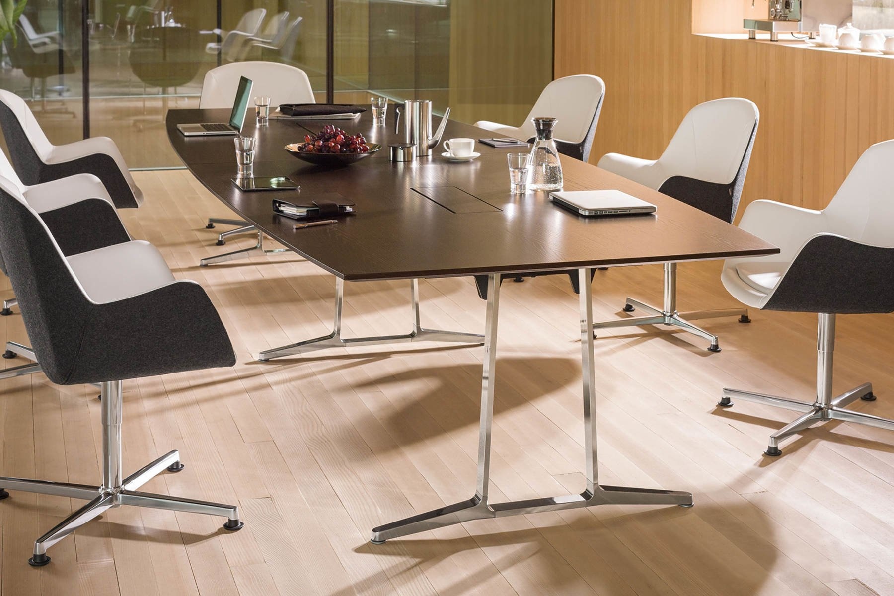 De uitgebreide keuze aan formaten van de Wiesner Hager Skill Conference biedt inrichtingsmogelijkheden voor elke architectuur. Een doordacht kabelmanagement in de Skill Vergadertafels met verborgen kabeldoorvoer en eenvoudige plug-in op tafelniveau zorgt voor een perfecte media-integratie.