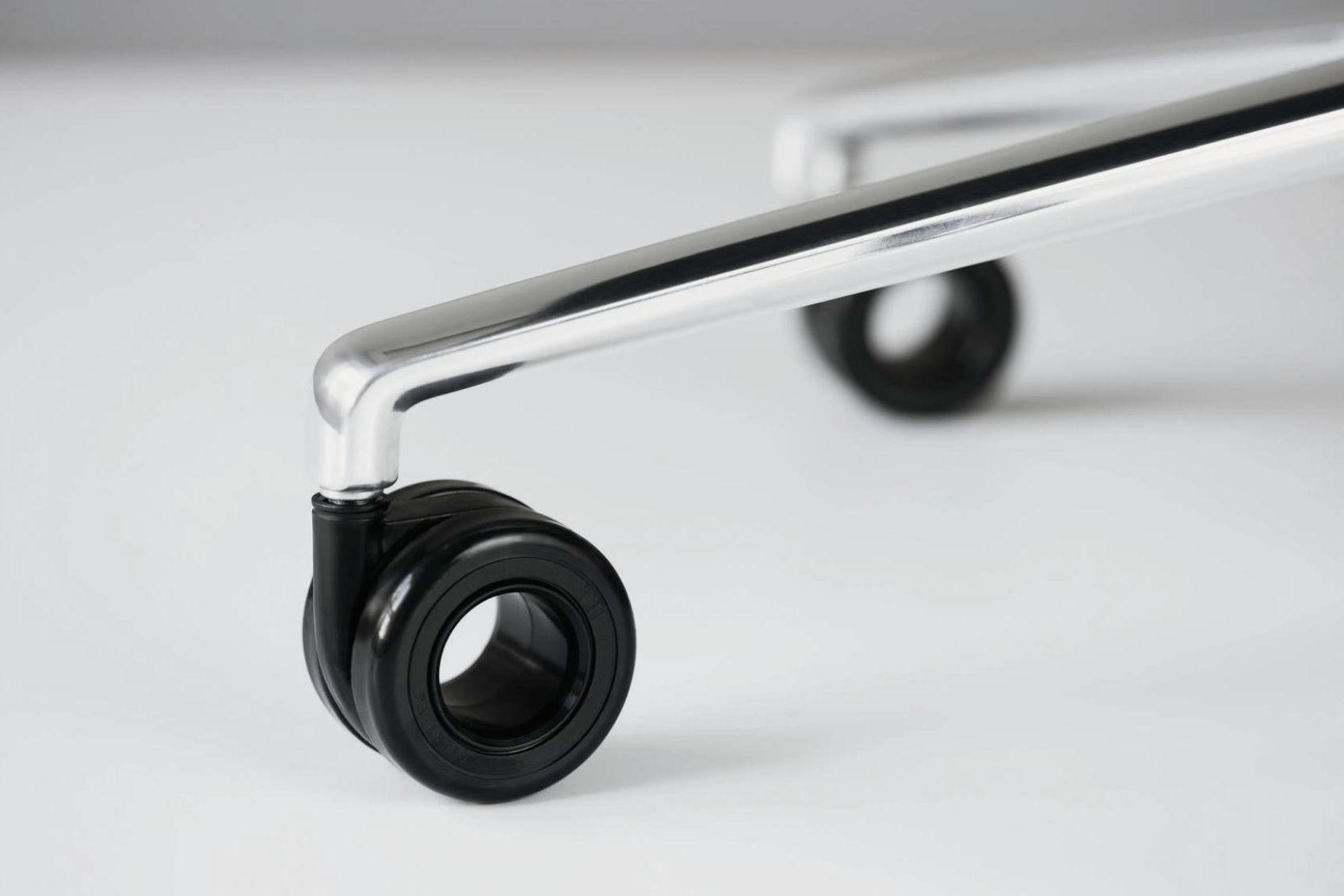 Leverbaar met of zonder wielen. De zwenkwielen zijn gemaakt van zwart polyamide dat voldoet aan DIN EN 12529 als de standaardversie voor tapijten.