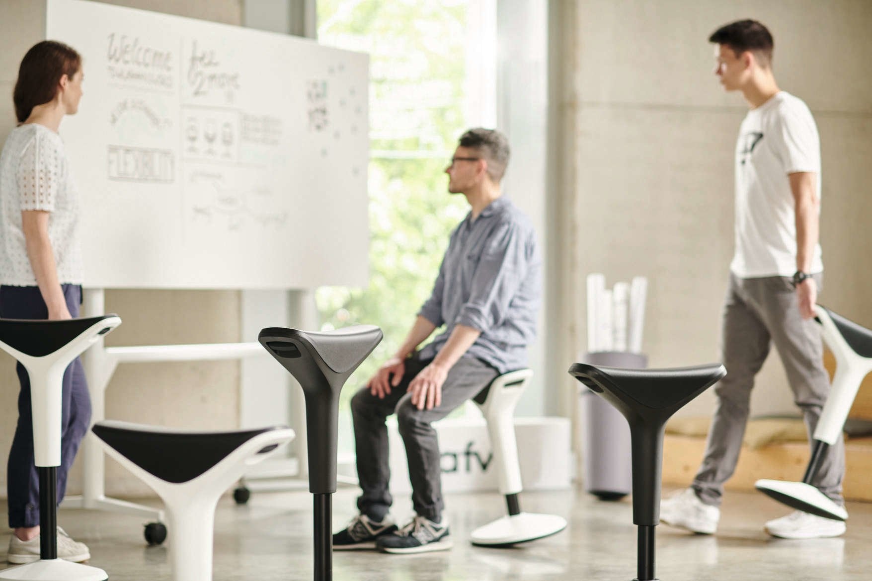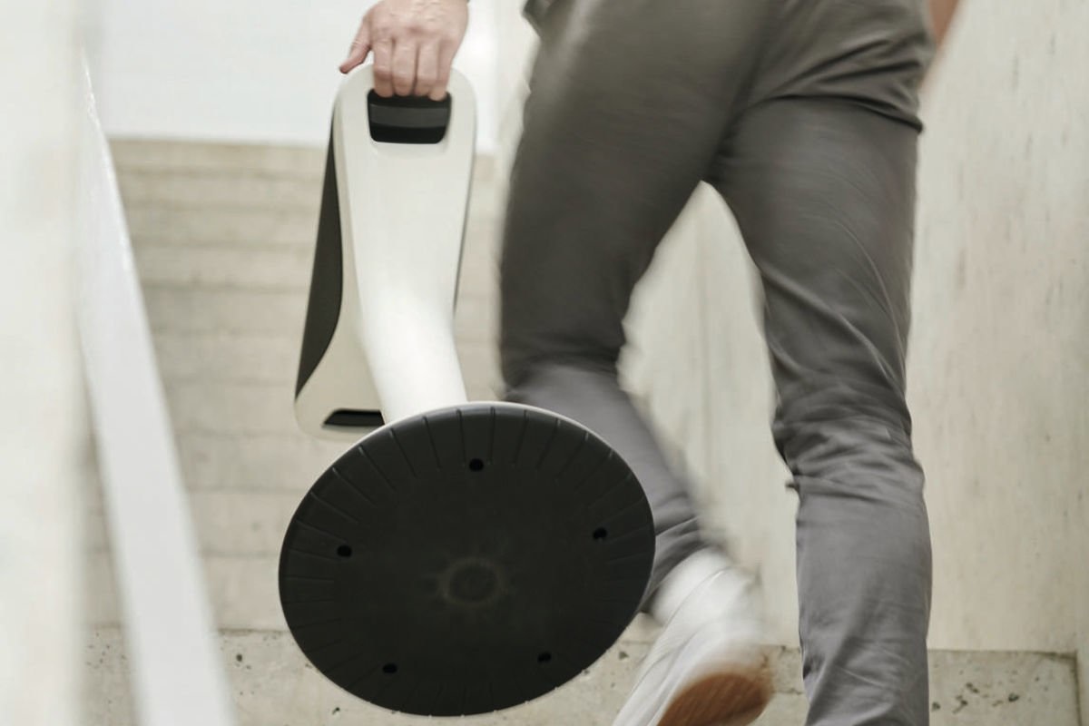 Deze compacte kruk is vervolgens na gebruik weer makkelijk op te bergen in bijvoorbeeld een hoek in de vergaderruimte. Klaar voor de volgende (iets te lange) vergadering.
