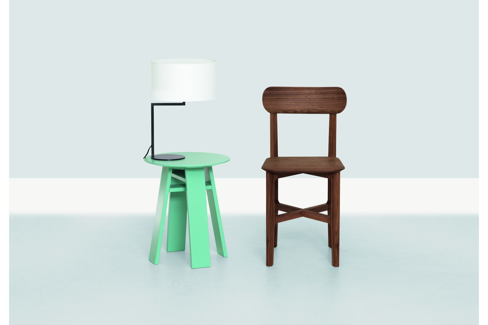 Bij Zeitraum 1.3 zijn natuurlijke kleur en textuur van het hout een uitgangspunt. Opvallender zijn de subtiele pasteltinten die door middel van een transparante lak op diverse stukken zijn aangebracht. Zoals de pastel roze en groene krukjes op foto 6. Door de kleur is het houttextuur nog goed te zien, dus typisch Zeitraum.