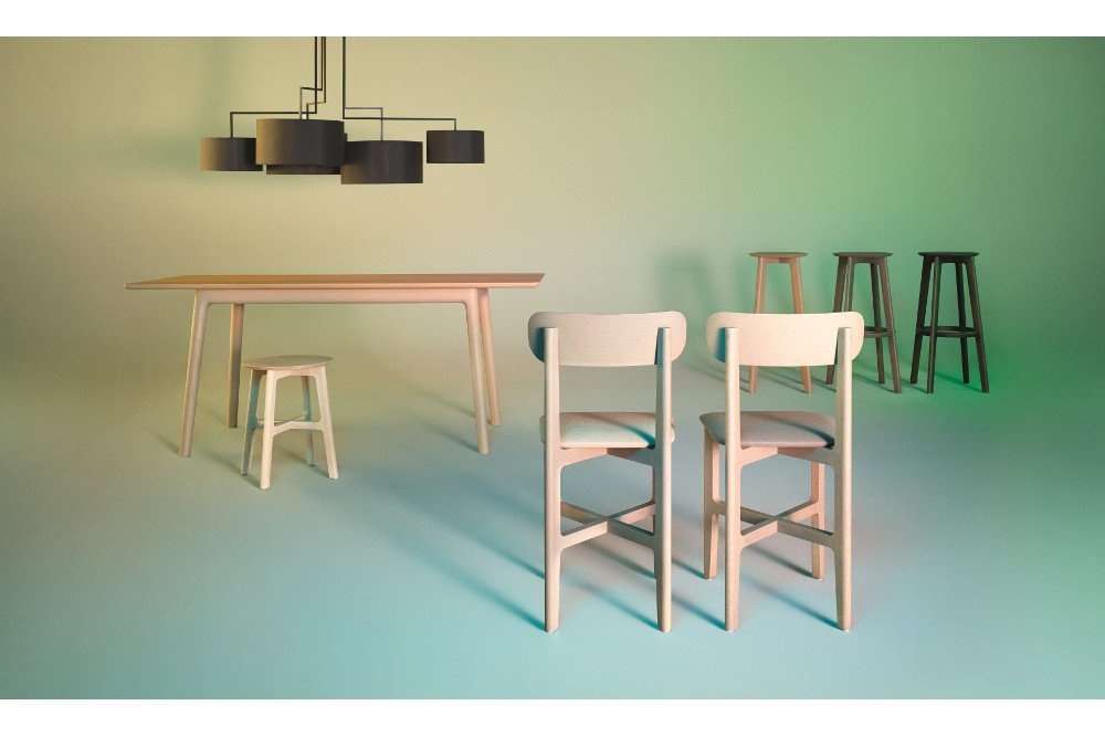 Zeitraum 1.3 serie bestaat uit een stoel, kruk en barkruk. Het meest opvallende kenmerk van deze meubellijn zijn de fijne contouren van de zitting en rugleuning. Design Kihyun Kim. Het ziet er naar uit alsof de lichtgewicht stol drijft op de lucht.