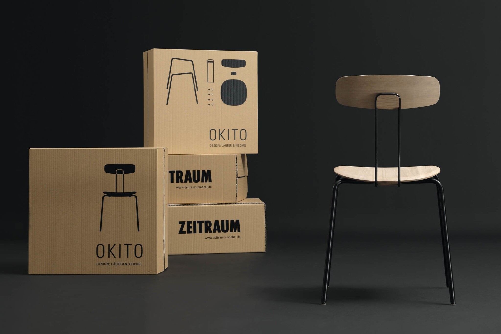 Zeitraum Okito is een stapelbare stoel met een apart vormgegeven verbinding van de rug met het zitgedeelte. Het hart van deze minimalistische stoel is de massief houten zitting. Met zijn gefreesde vorm verankert de massief houten zitting het frame en de rugleuning van de stoel. De beugels zijn eenvoudig aan de onderkant vastgeschroefd en van bovenaf niet zichtbaar. De verbinding van de rugleuning wordt bereikt zonder zichtbare schroeven. Kenmerken Zeitraum Okito stoel