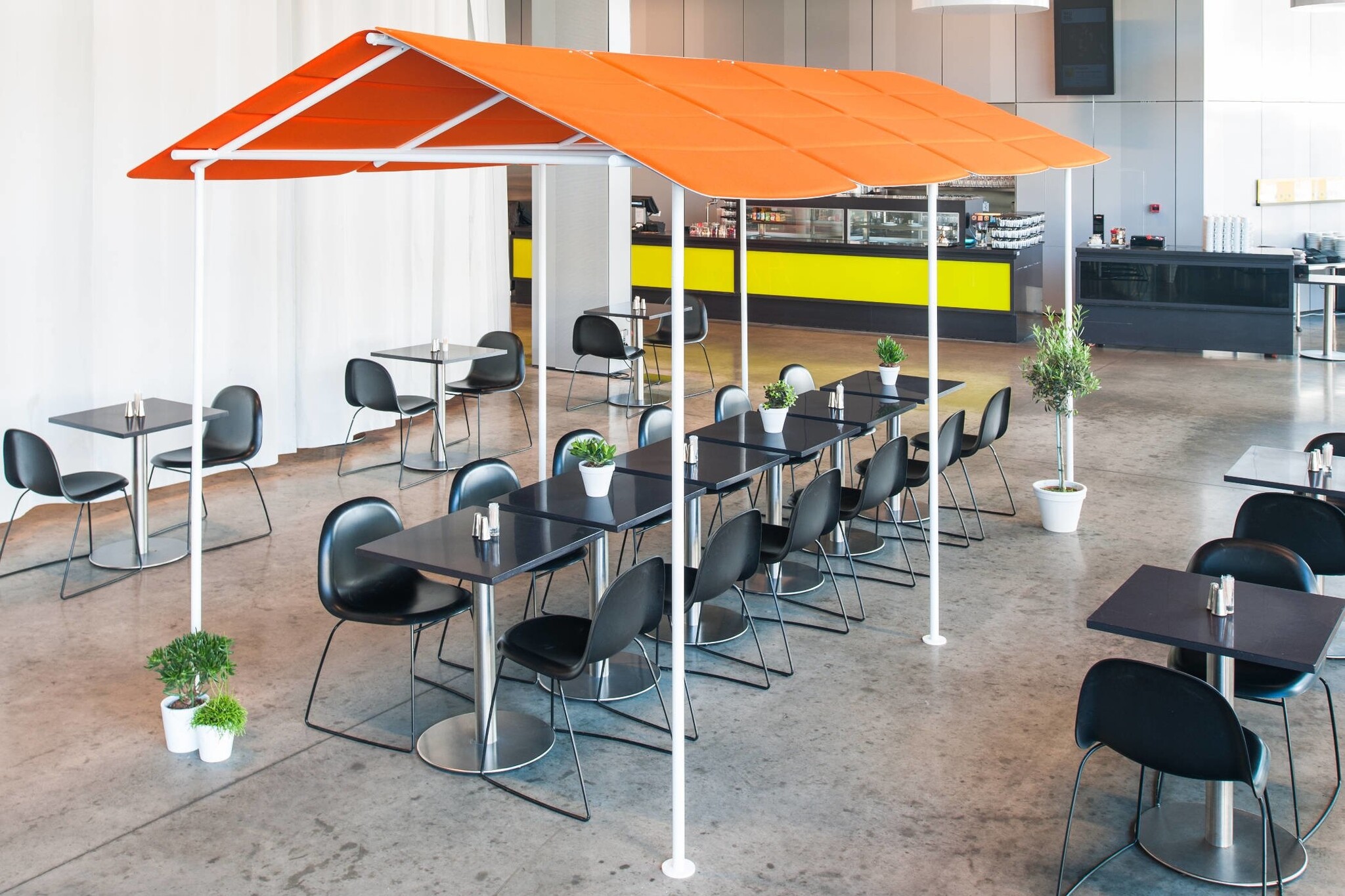 De Abstratca Plaid familie heeft een toevoeging gekregen: Plaid House. Hieronder is het goed vertoeven en de geluiden worden gedempt. Het huis maakt het mogelijk om ruimtelijkheid in de open ruimtes te creëren zonder muren.
