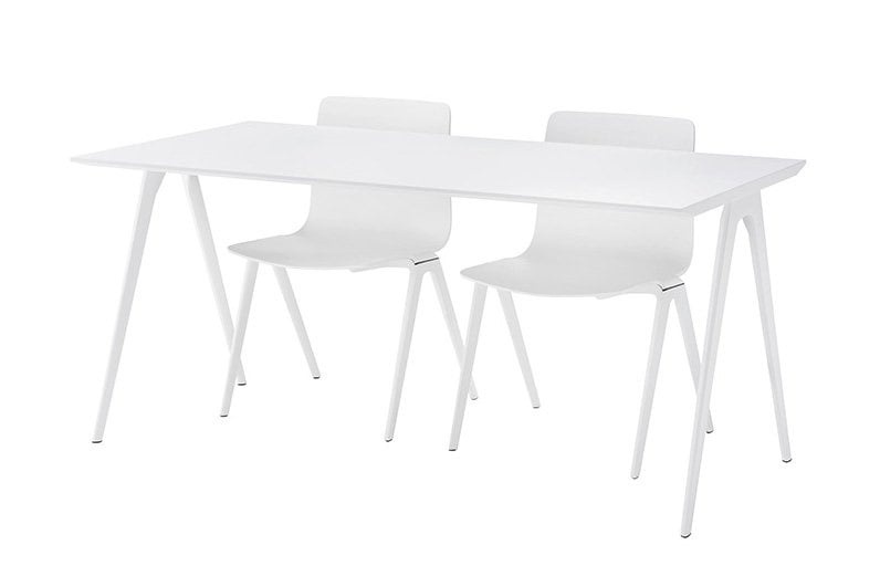 Vult door de vorm van de tafelpoten perfect de A-Chair aan.