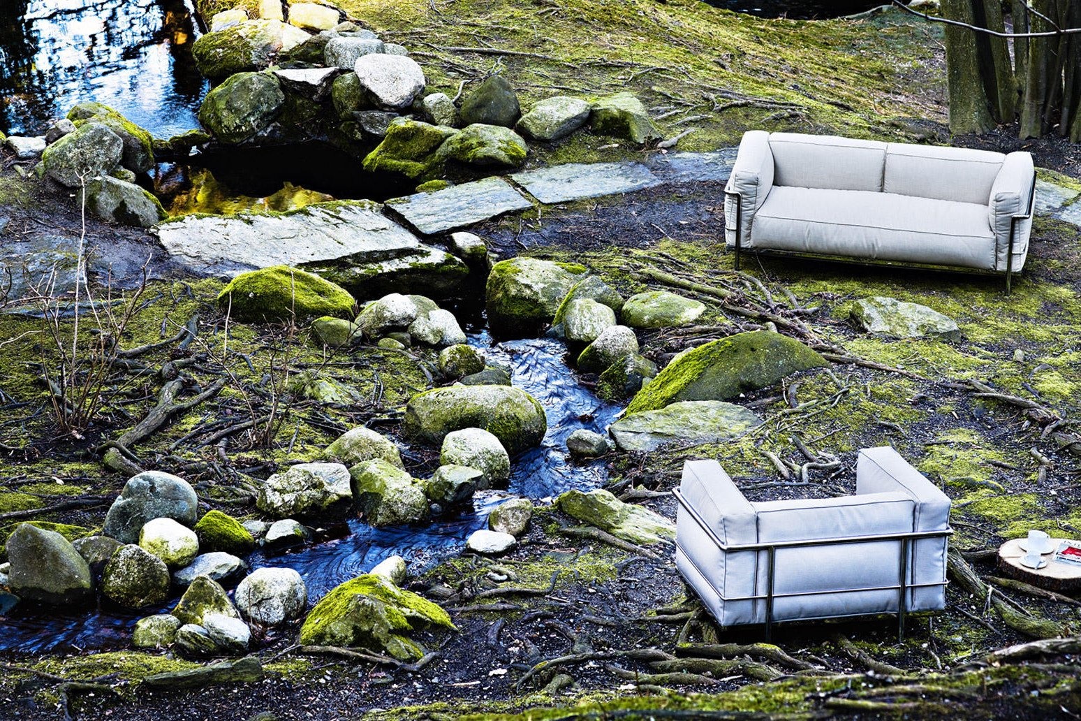 De Cassina LC3 collectie heeft ook modellen die geschikt zijn voor buitengebruik.