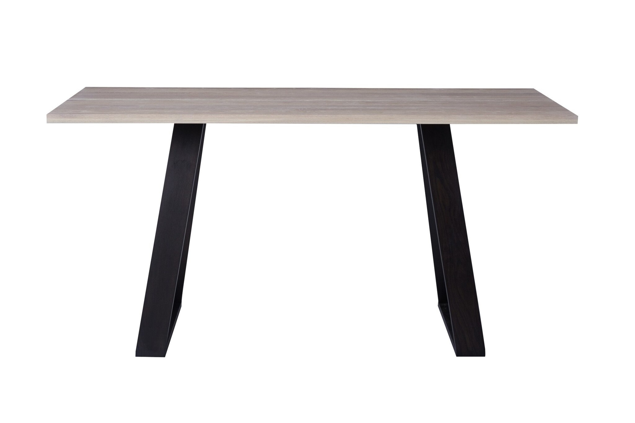 De tafel heeft een metalen onderstel of een eiken onderstel.