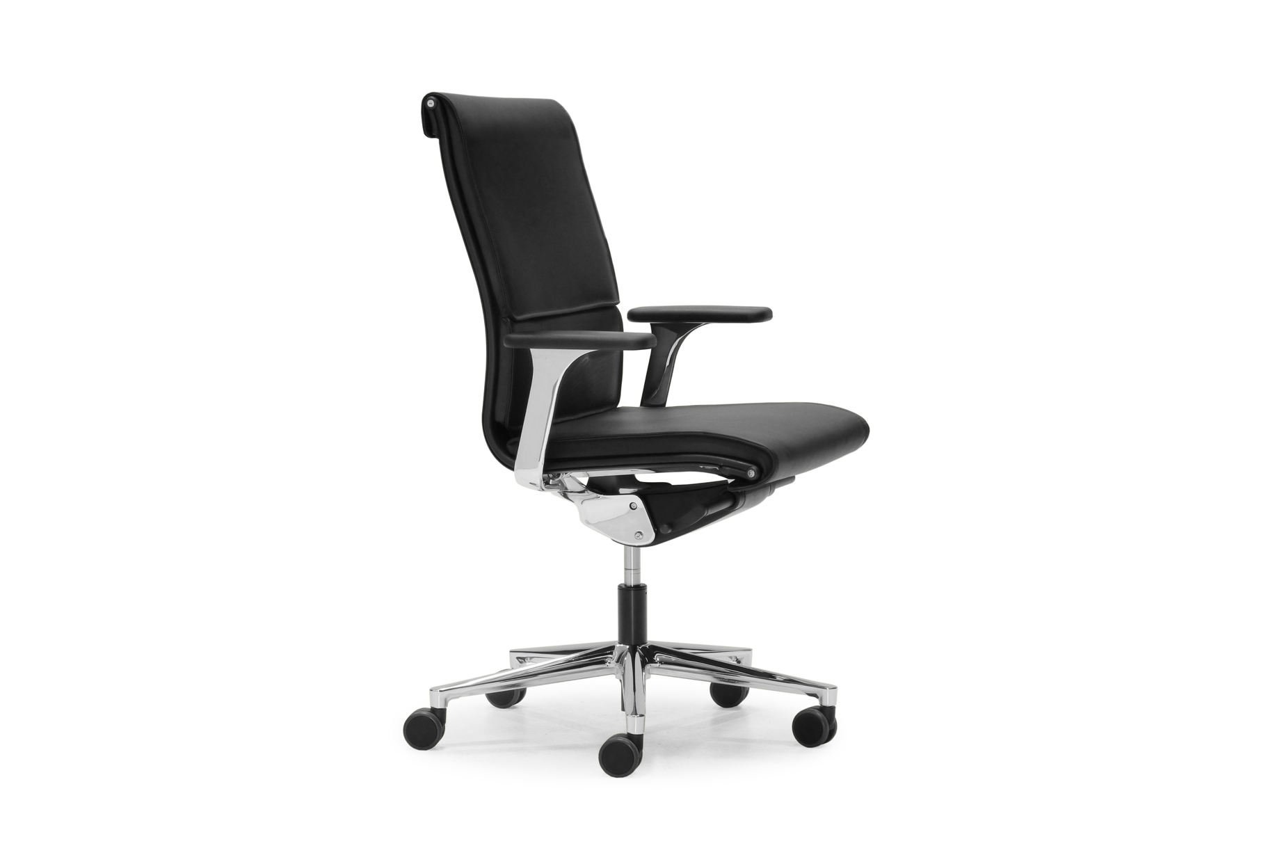 Vaste armleuningen en 3D-armleuningen zijn beschikbaar. De 3D armen zijn in hoogte, breedte en diepte verstelbaar. Optioneel is een lederen armsteun mogelijk. Leverbaar met hoofdsteun.