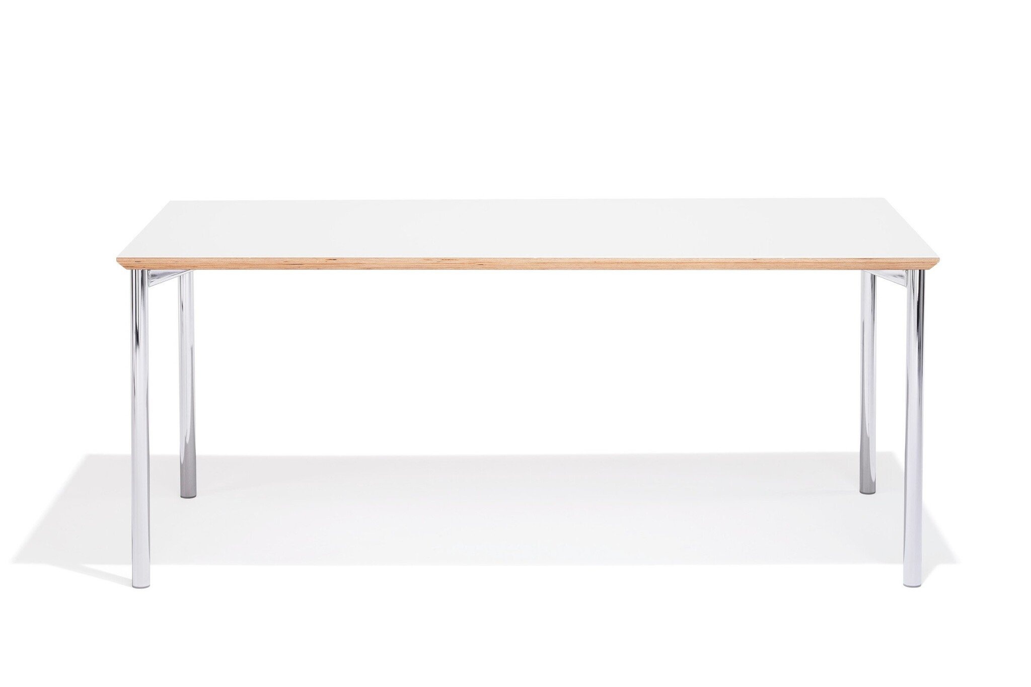 Kusch 3050 tafelserie bestaat uit simpele, praktische tafels met vierkante, rechthoekige, trapeziumvormige, ronde en halfronde tafelbladen. De tafels kunnen snel en op eenvoudige wijze aan elkaar gekoppeld worden om een opstelling naar wens te maken. Handig voor horeca gelegenheden maar ook prima voor conferentie- en vergaderruimtes. De poten zijn aan het tafelblad vastgeschroefd en voorzien van kunststof glijders. Het frame is standaard maar kan eventueel ook glanzend of zijde mat verchroomd worden. Om de tafels te verplaatsen zijn de poten optioneel met twee verborgen wielen verkrijgbaar. Direct uit voorraad leverbaar twee grote tafelopstellingen speciaal voor een conferentie- of vergaderruimte. Mooi afgewerkte tafels uitgevoerd in houtfineer en zijde mat verchroomde poten. De opstellingen kunnen eenvoudig kleiner gemaakt worden door er een tafelblad blad tussenuit te halen.Kusch specificaties grote tafelopstellingen