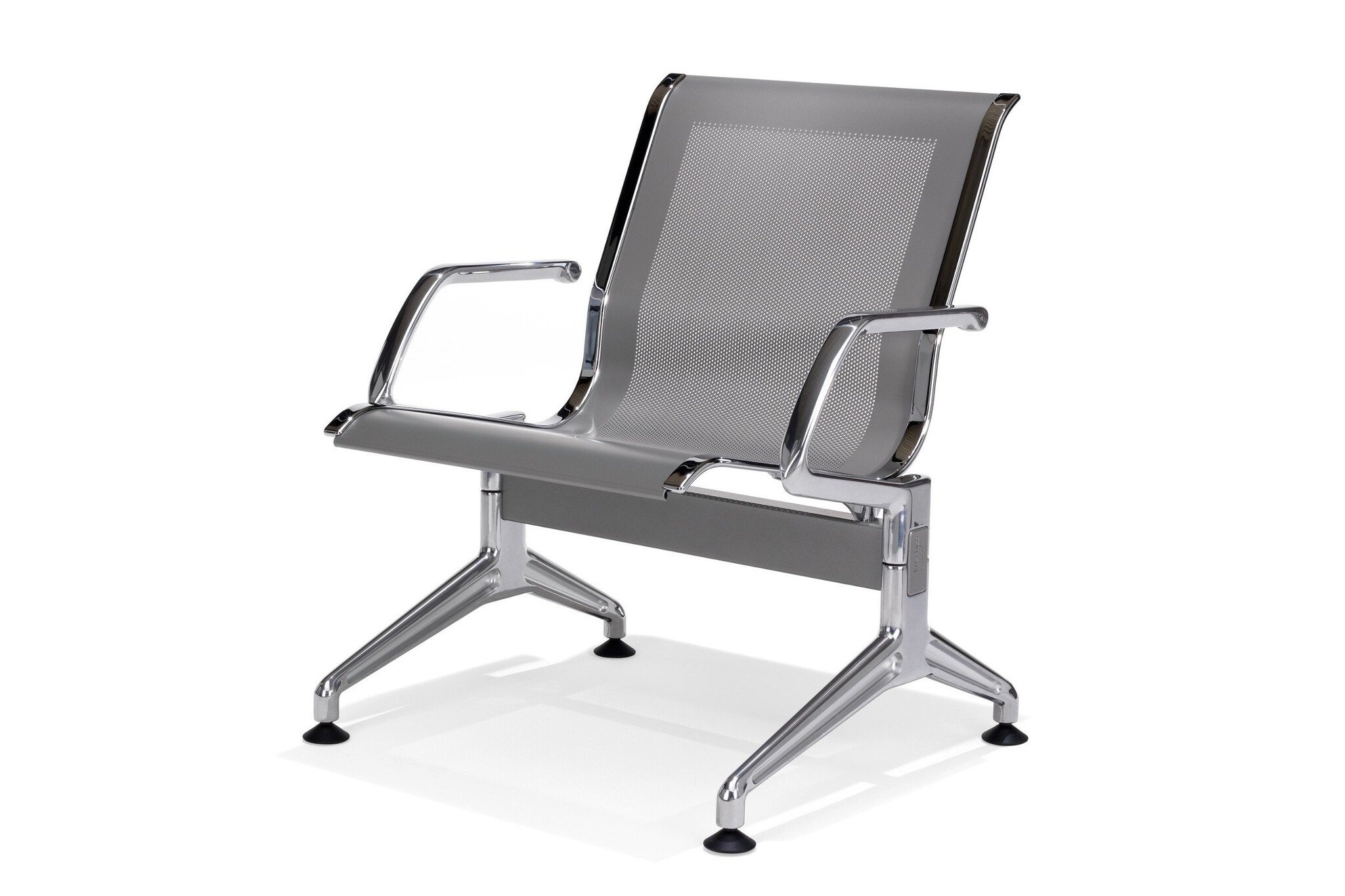 Het architectonische design van Kusch + Co Terminal 7100, de technische perfectie en de hoogwaardige materiaalkeuze zijn de troeven van deze bankserie. Ontwerp van prof. Jorgen Kastholm. De licht gebogen zitschalen van geperforeerd staal, optioneel met opdekstoffering, contrasteren met de glanzend verchroomde voetstukken, armleggers en zijstrippen. Naast zijn mooie aanblik biedt chroom het voordeel dat het krasvast is en zijn glans behoudt. De zitschaal in roestvrij staal is slechts één van de vele varatiemogelijkheden. Materialen staal