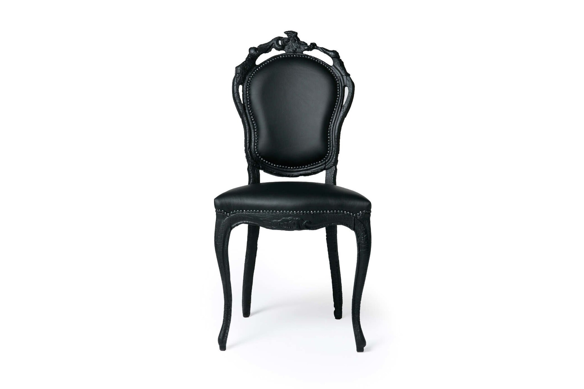 Altijd een uniek ontwerp. Dit komt doordat het hout van deze stoel verbrand wordt bij het maken. Vervolgens wordt dit met epoxyhars gelakt. Door deze methode ziet geen enkele stoel er exact hetzelfde uit.